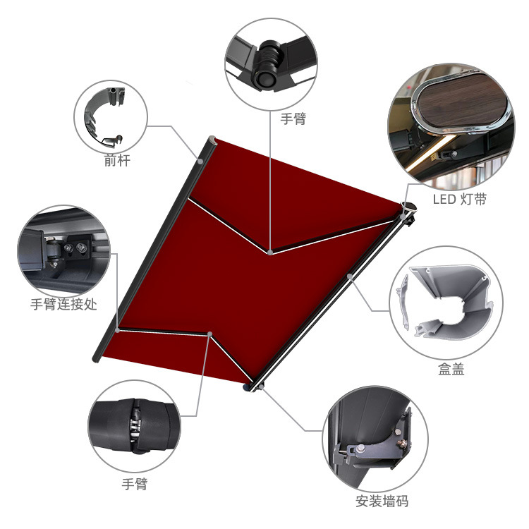 야외 알루미늄 합금 개폐식 천막 전체 상자 전기 천막 빌라 발코니 접이식 천막