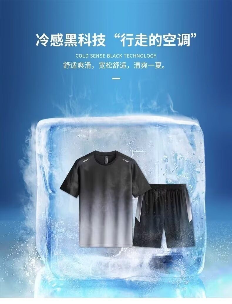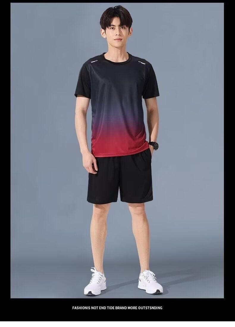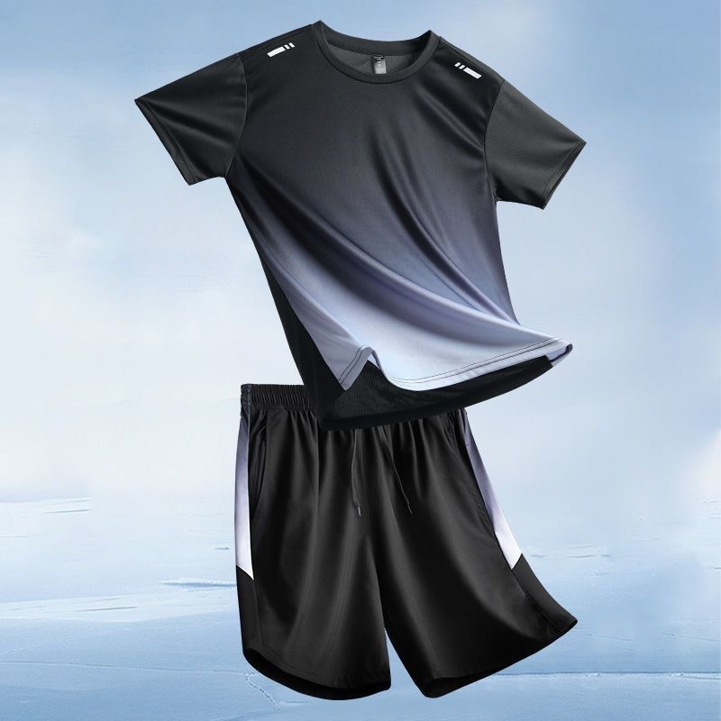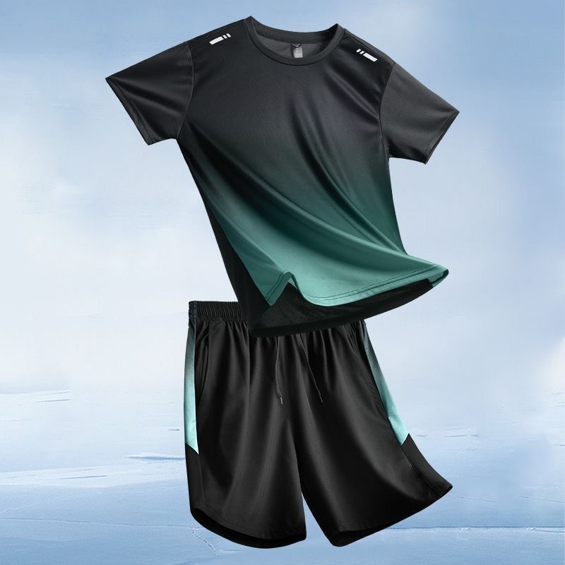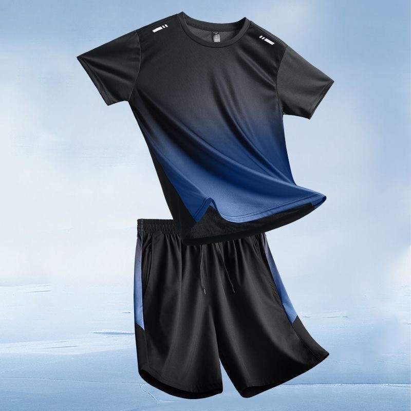 피트니스 아이스 실크 남성 캐주얼 운동복 정장 여름 속건성 반팔 티셔츠 러닝 농구 트레이닝 반바지 남성용