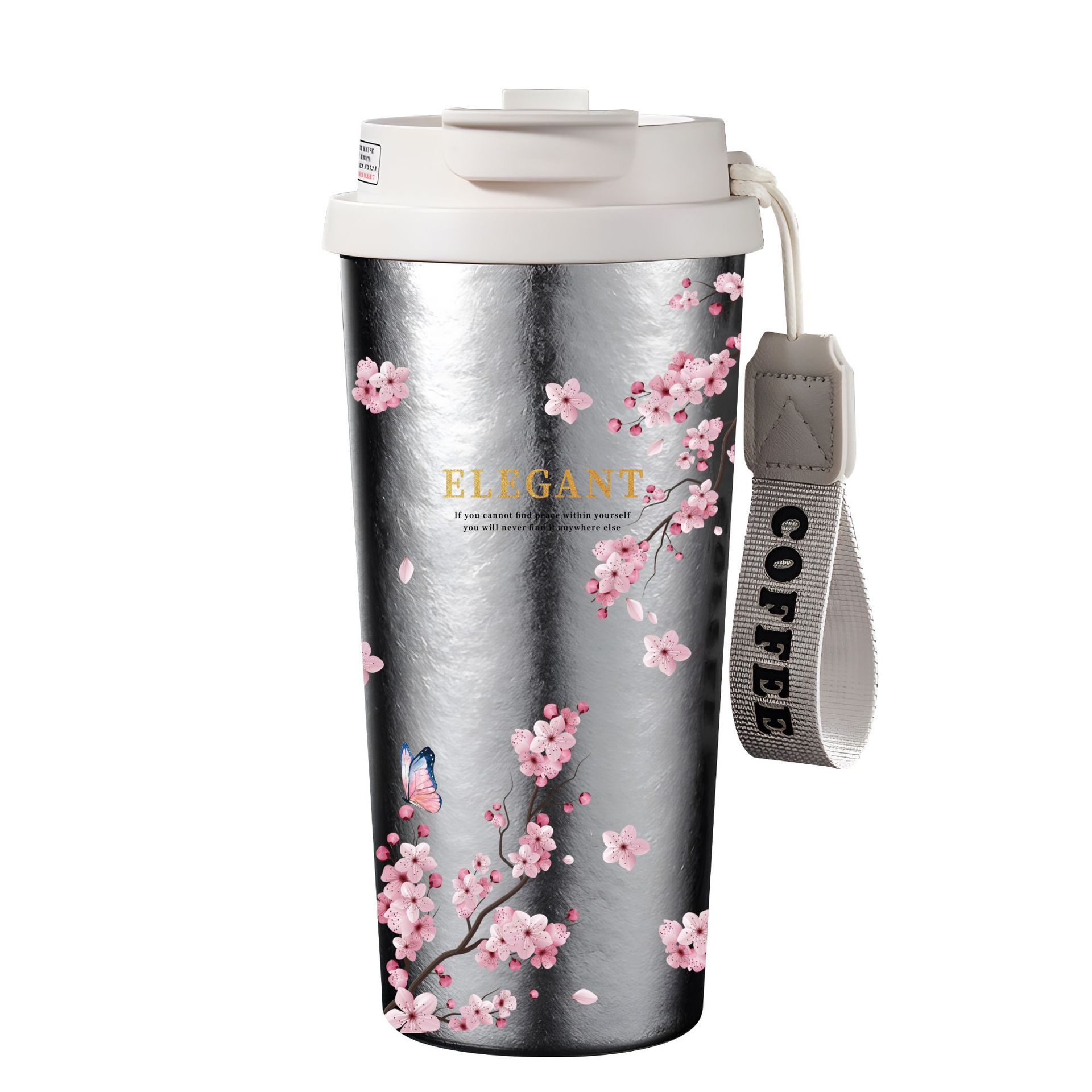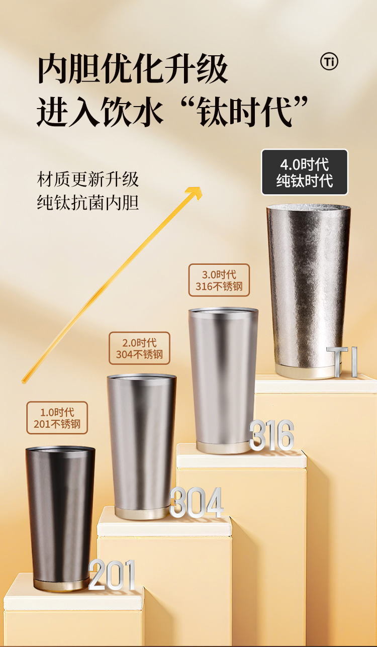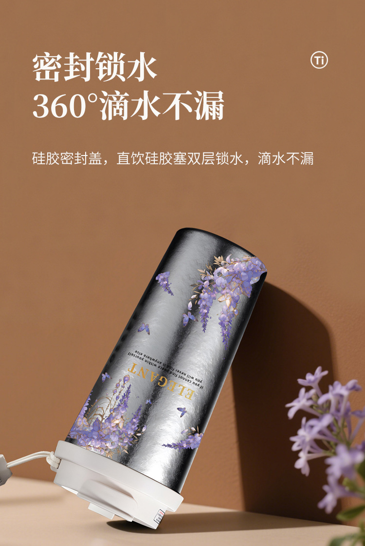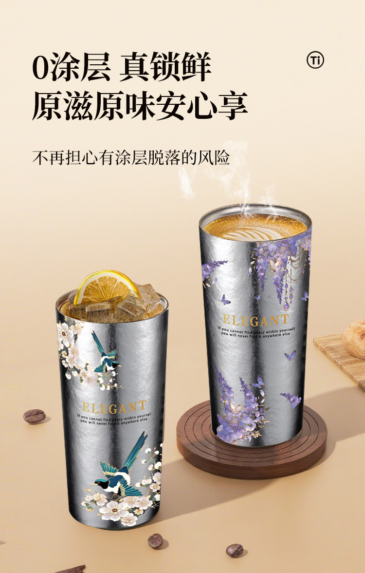 2025 새로운 고급스러운 순수 티타늄 커피 컵 야외 휴대용 티타늄 컵 여성의 가벼운 럭셔리 은방울꽃 보온병 컵 더블 레이어 펩티드 컵