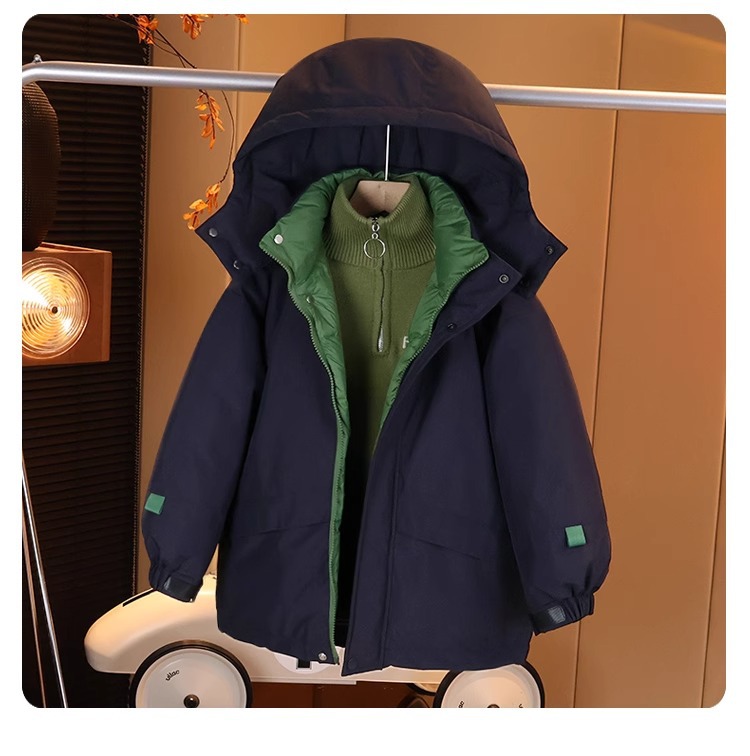중대형 아동용 면 코트, 남아용 면 패딩 재킷, 아동용 면 패딩 재킷, 다운 면 코트, 겨울 두꺼운 겨울 코트, 대비색 재킷