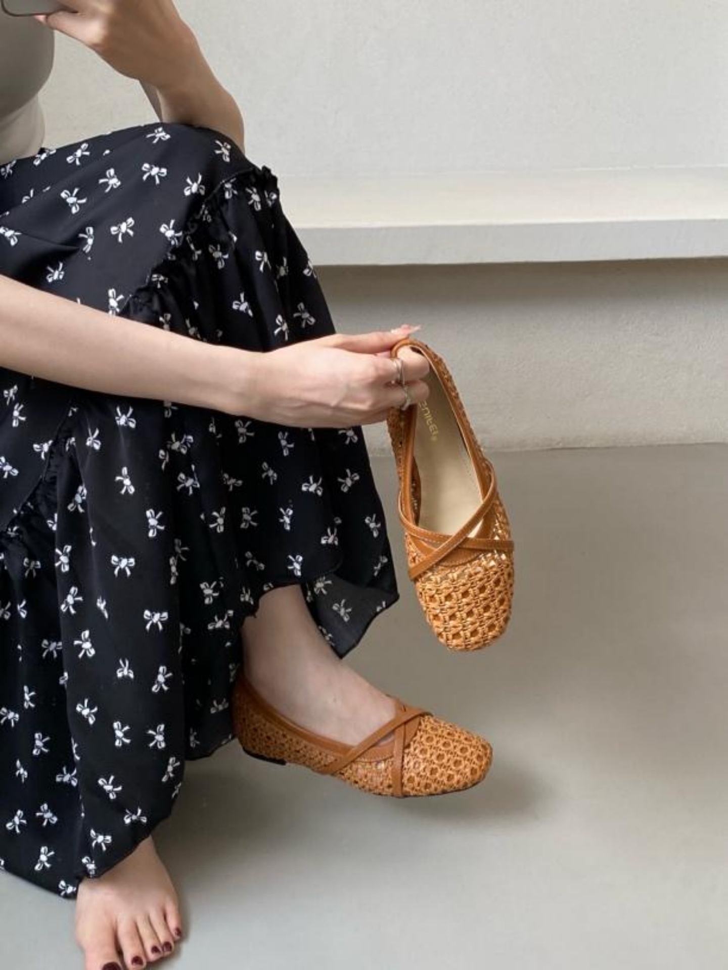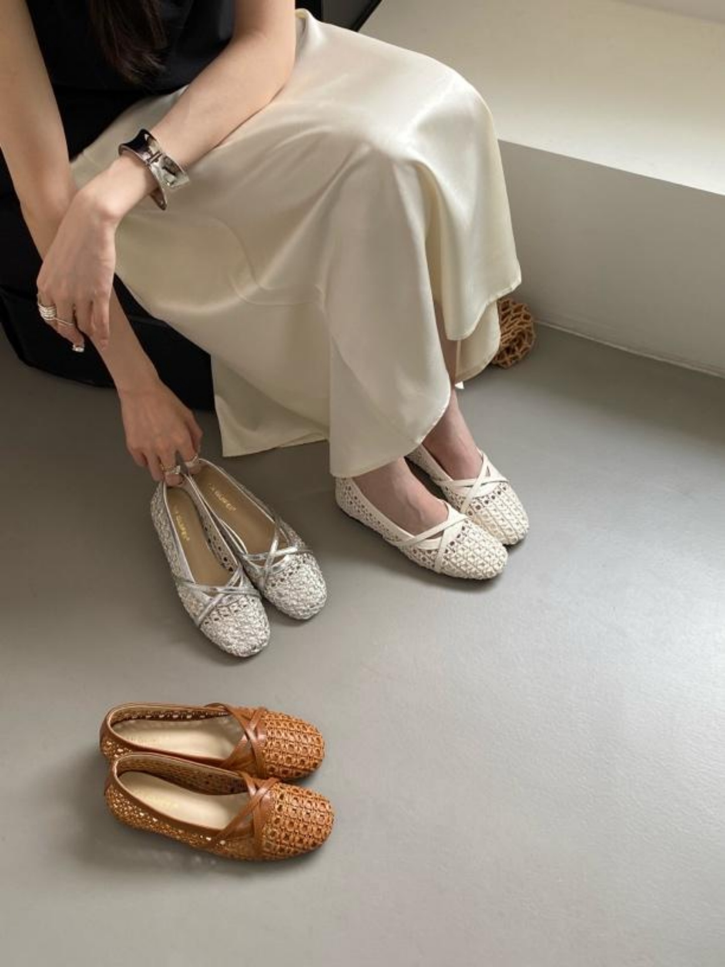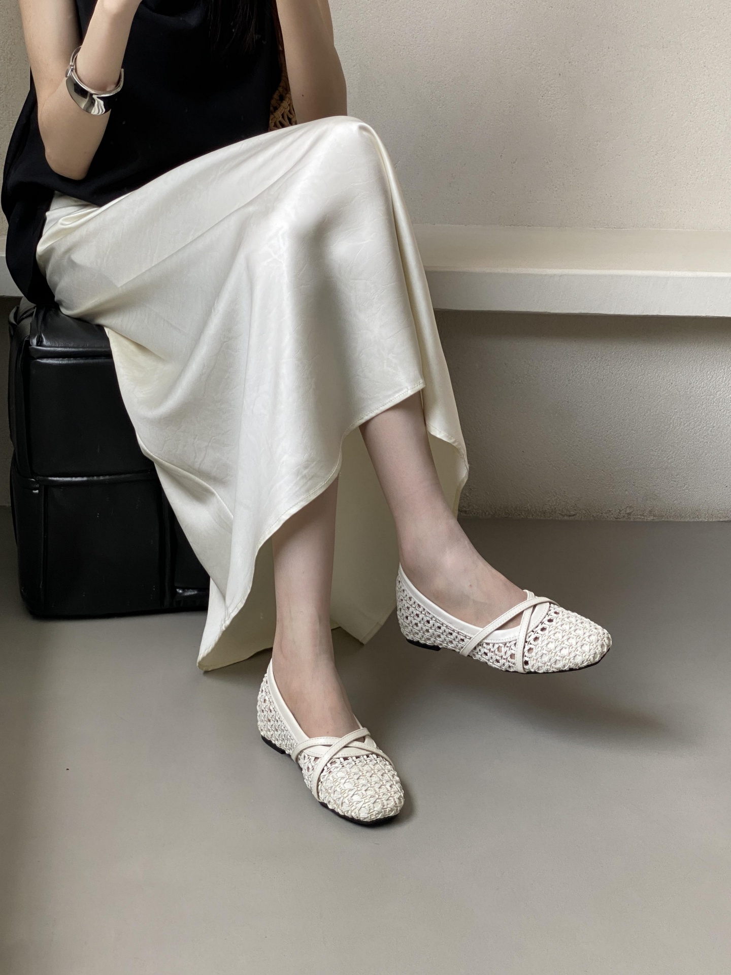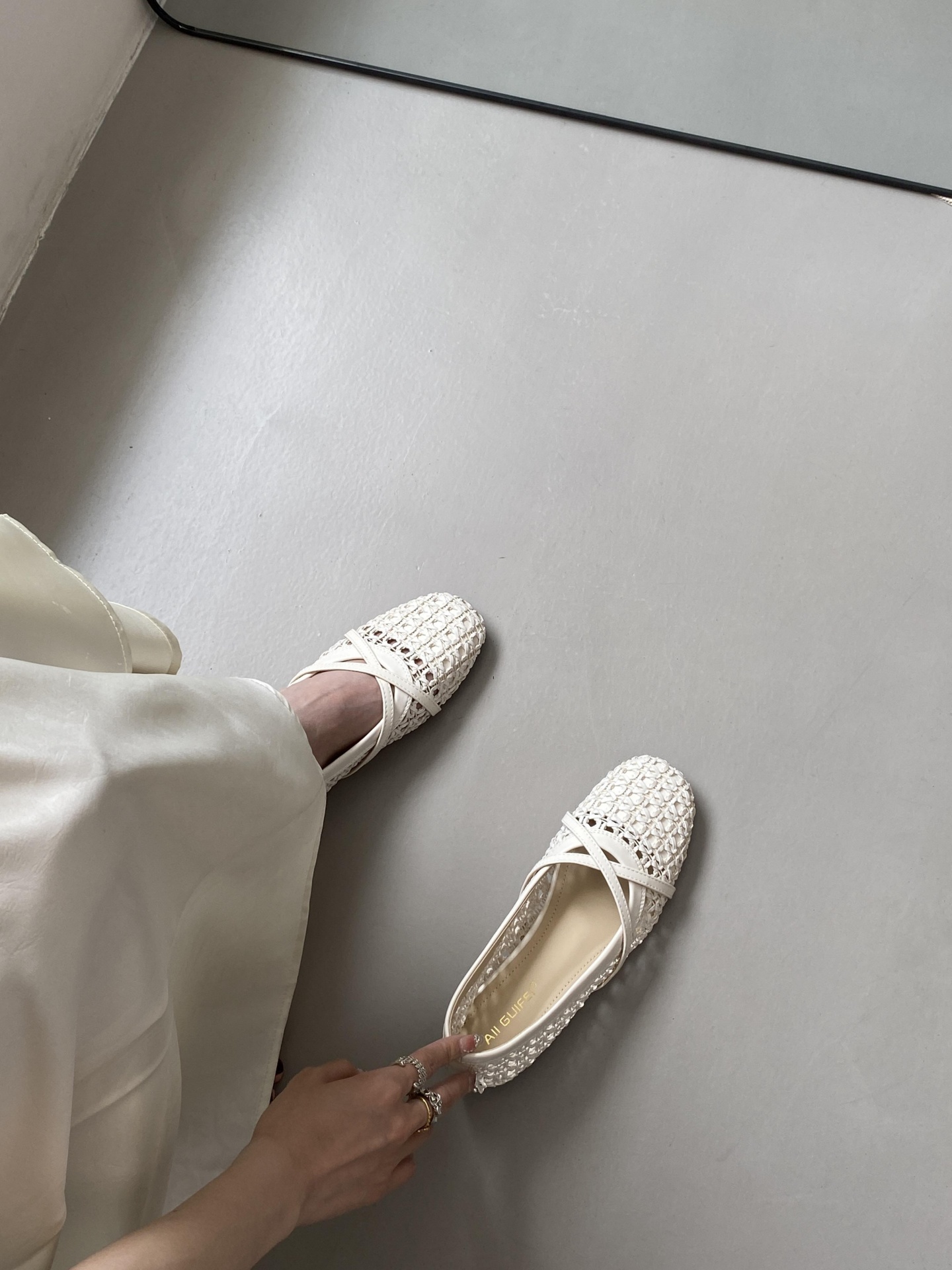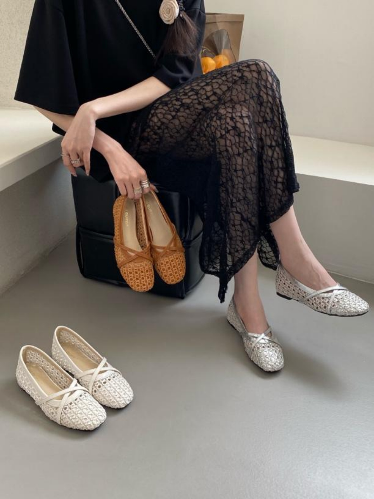 2025년 여름 신상 프렌치 스퀘어 토 메쉬 우븐 중공 여성용 신발, 슬림하고 다재다능한 내부 기질 샌들스토어 가기