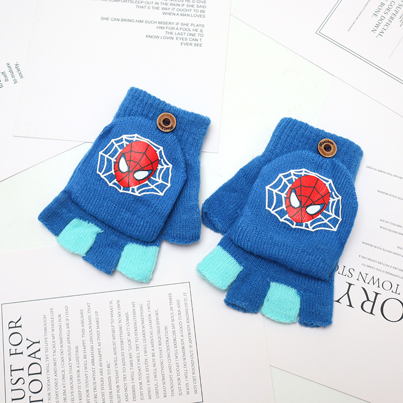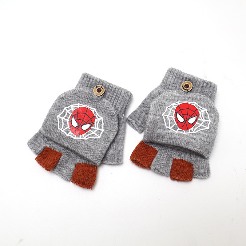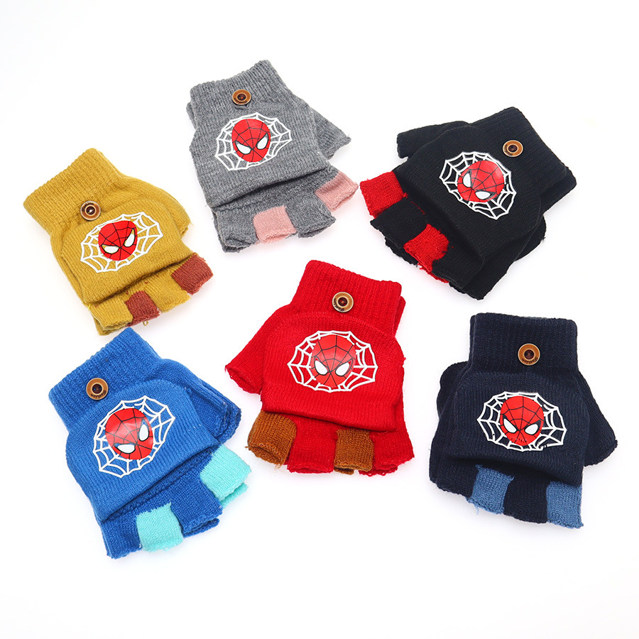 스파이더 맨 플립 온 장갑 소년 겨울 만화 따뜻한 니트 애니메이션 핑거 플립 온 핸드 가드 크로스 보더 장갑