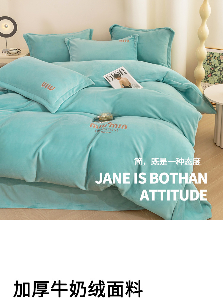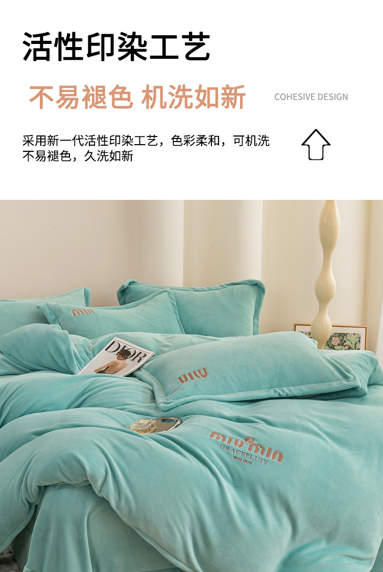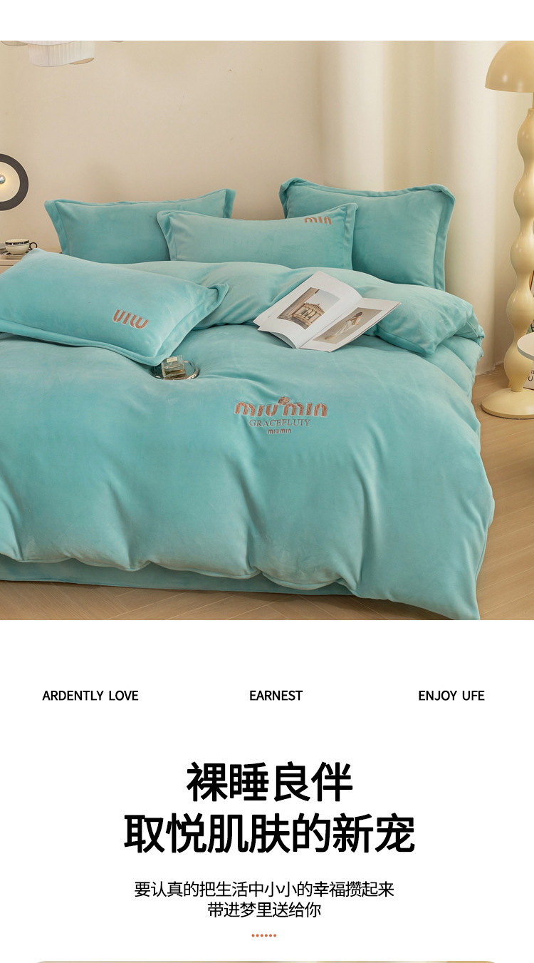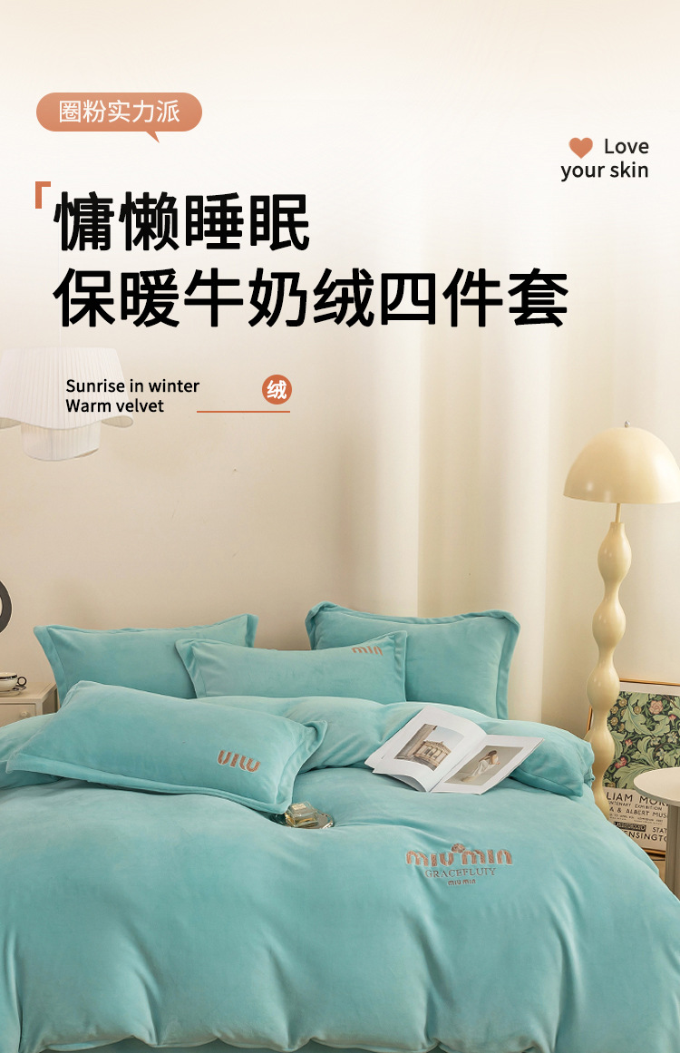 양면 밀크벨벳 4종세트, 두툼하고 따뜻한 한국식 침대 스커트, 가을 겨울 이불커버, 더블침대...스토어 가기