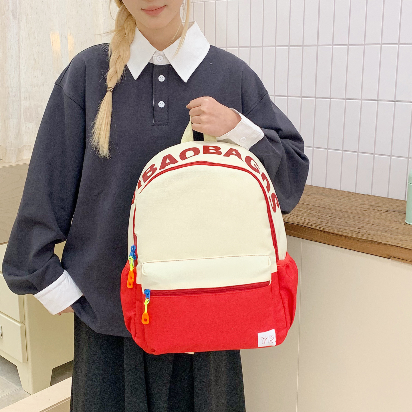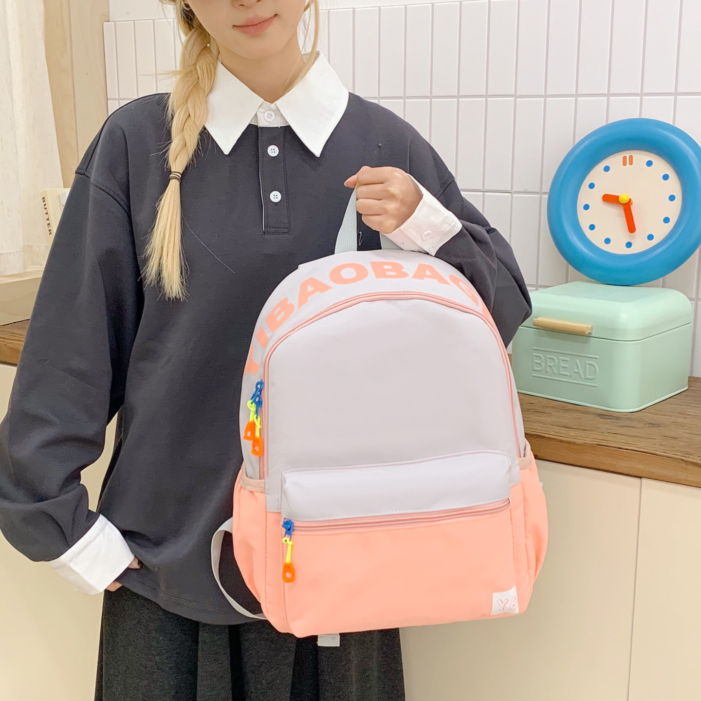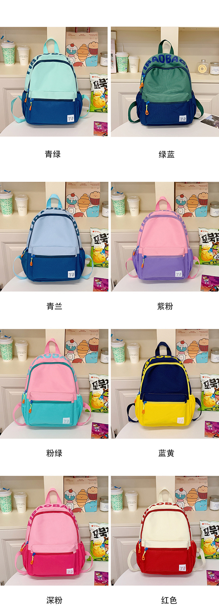어린이, 여아, 초등학생을 위한 대비되는 색상의 귀여운 책가방, 가벼운 배색 배낭, 고급스러운 유치원 여행 배낭스토어 가기