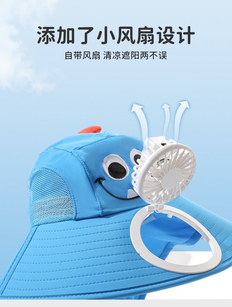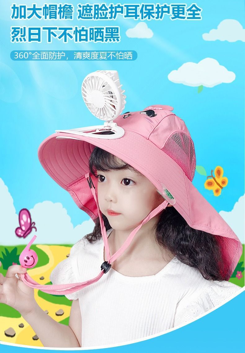 어린이용 자외선 차단 모자, 아기용 태양 모자, 팬이 달린 큰 챙이 있는 남아용 모자, 여름 패션 및 캐주얼 여아용 태양 모자