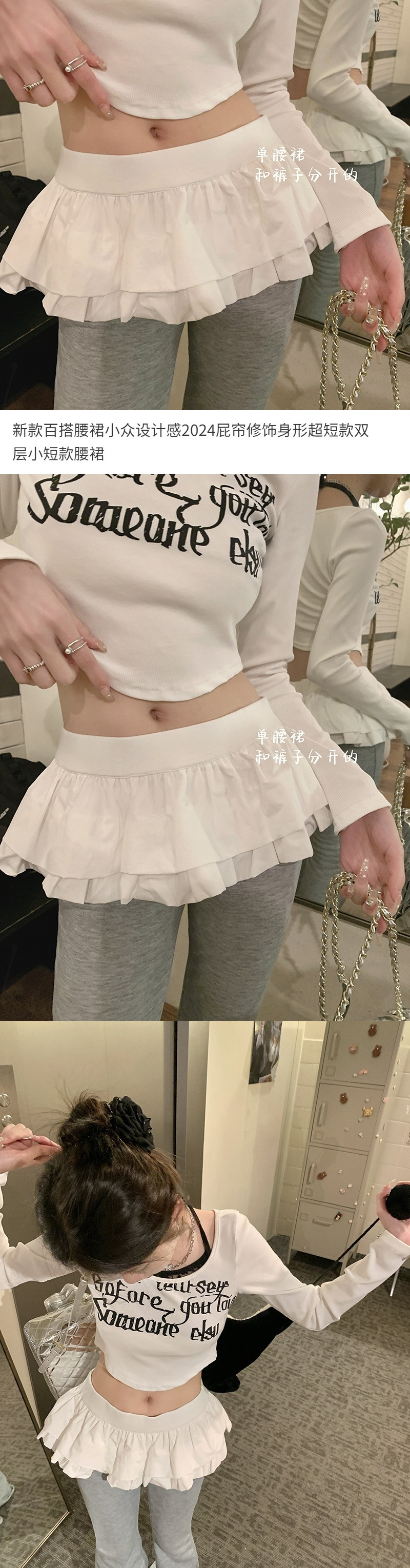 신상 만능 허리 스커트, 틈새 디자인, 2024년 바디 컨투어링 힙 커튼, 초단형 더블 레이어 짧은 허리 스커트스토어 가기
