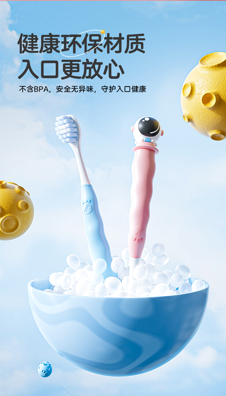 • 귀여운 우주 비행사 치아 청소 어린이 칫솔*블루