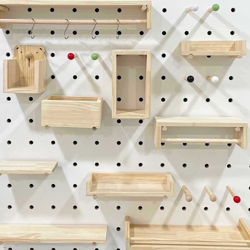 ✅ 홀 보드 액세서리 범용 작은 나무 막대기 보관함 보관 둥근 구멍 후크 파티션 레이어 목재스토어 가기