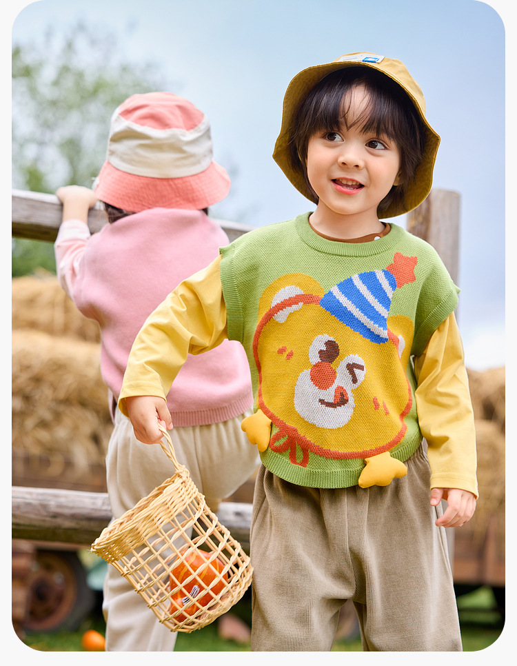 [면 100%] Dudu 아동 조끼 가을 소년 니트 조끼 가을 여성 BMW 클립 아동복 유행