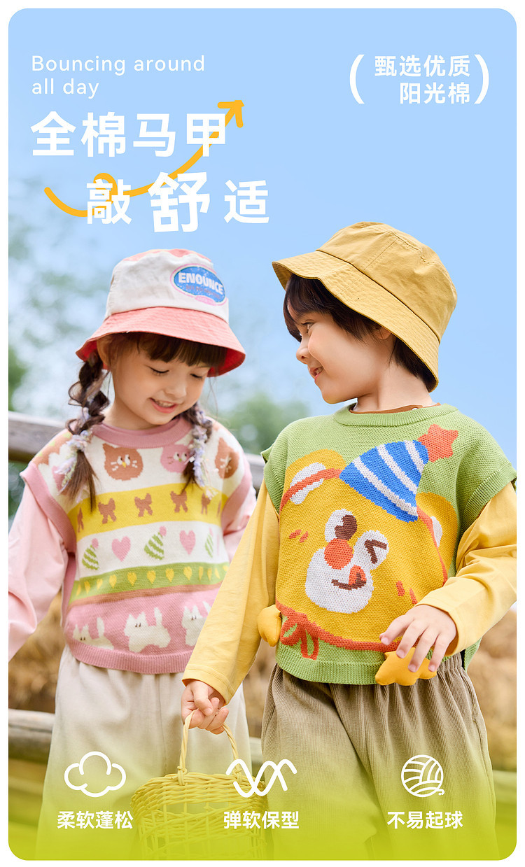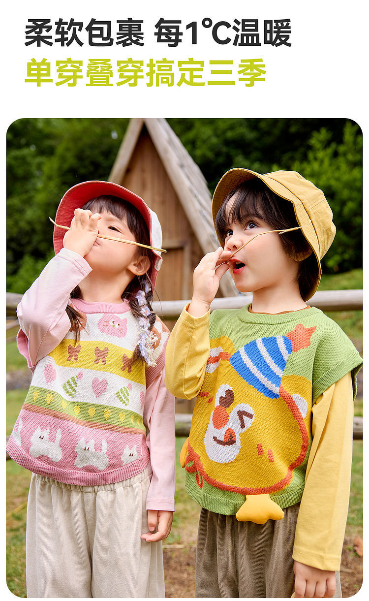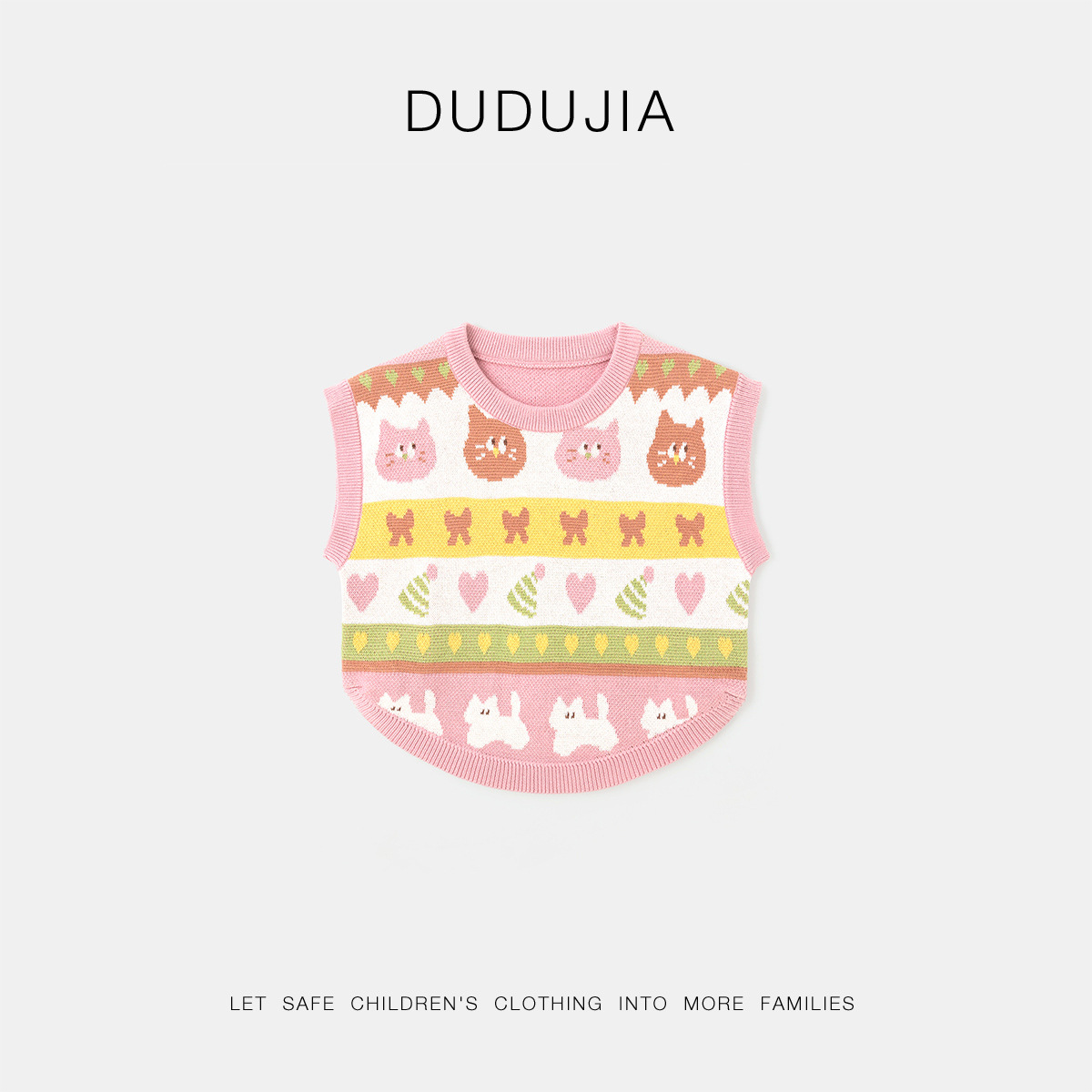 [면 100%] Dudu 아동 조끼 가을 소년 니트 조끼 가을 여성 BMW 클립 아동복 유행스토어 가기