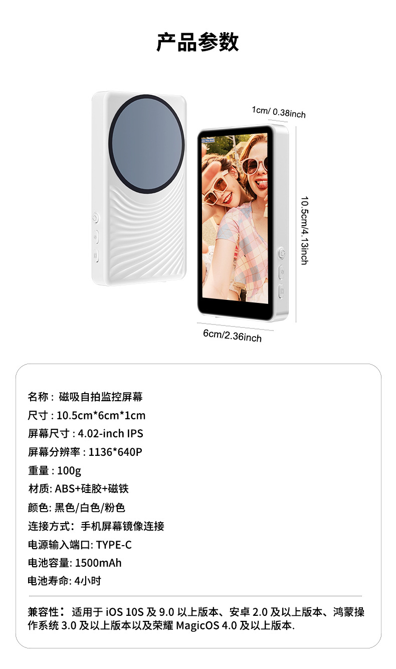휴대폰 후면 셀카 디스플레이 인터넷 연예인 라이브 방송 촬영 스크린 프로젝션 장치 원격 촬영 자석 스크린 프로젝션 장치