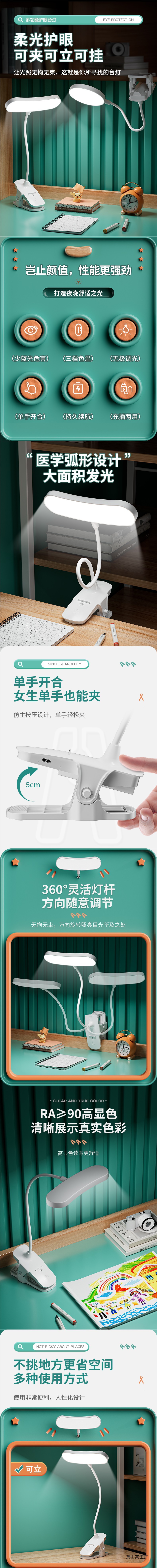 • 곡선형 클립 모델 [충전 및 플러그인 겸용] 3단계 색온도 + 무단계 디밍 [무료 충전 케이블]
