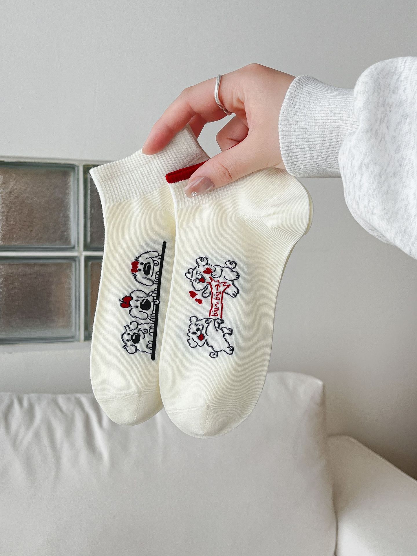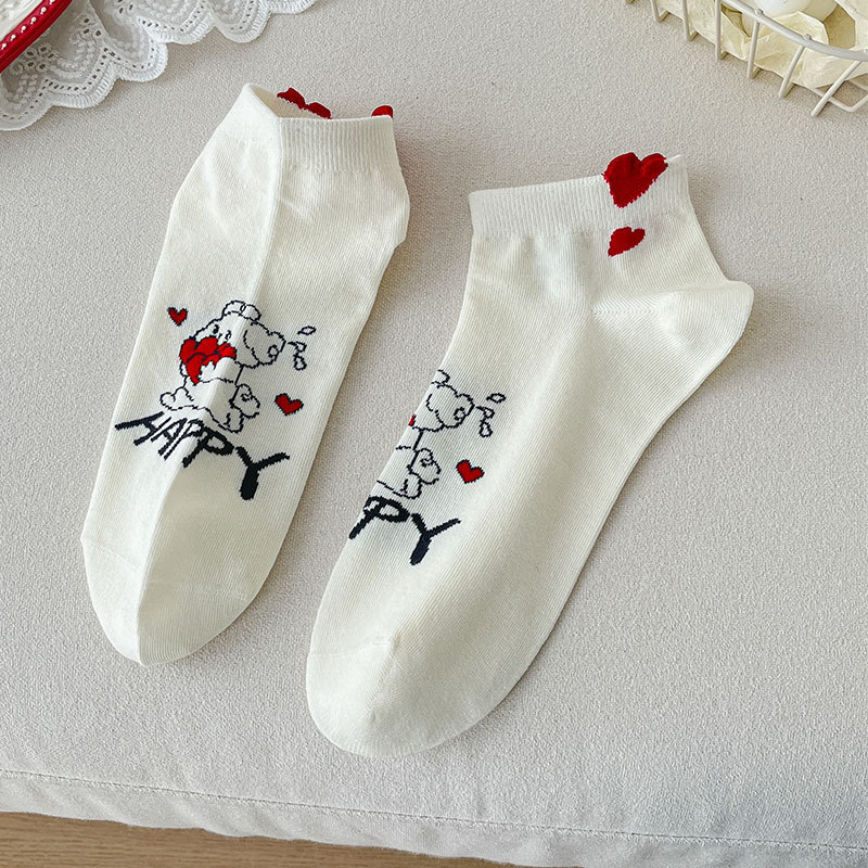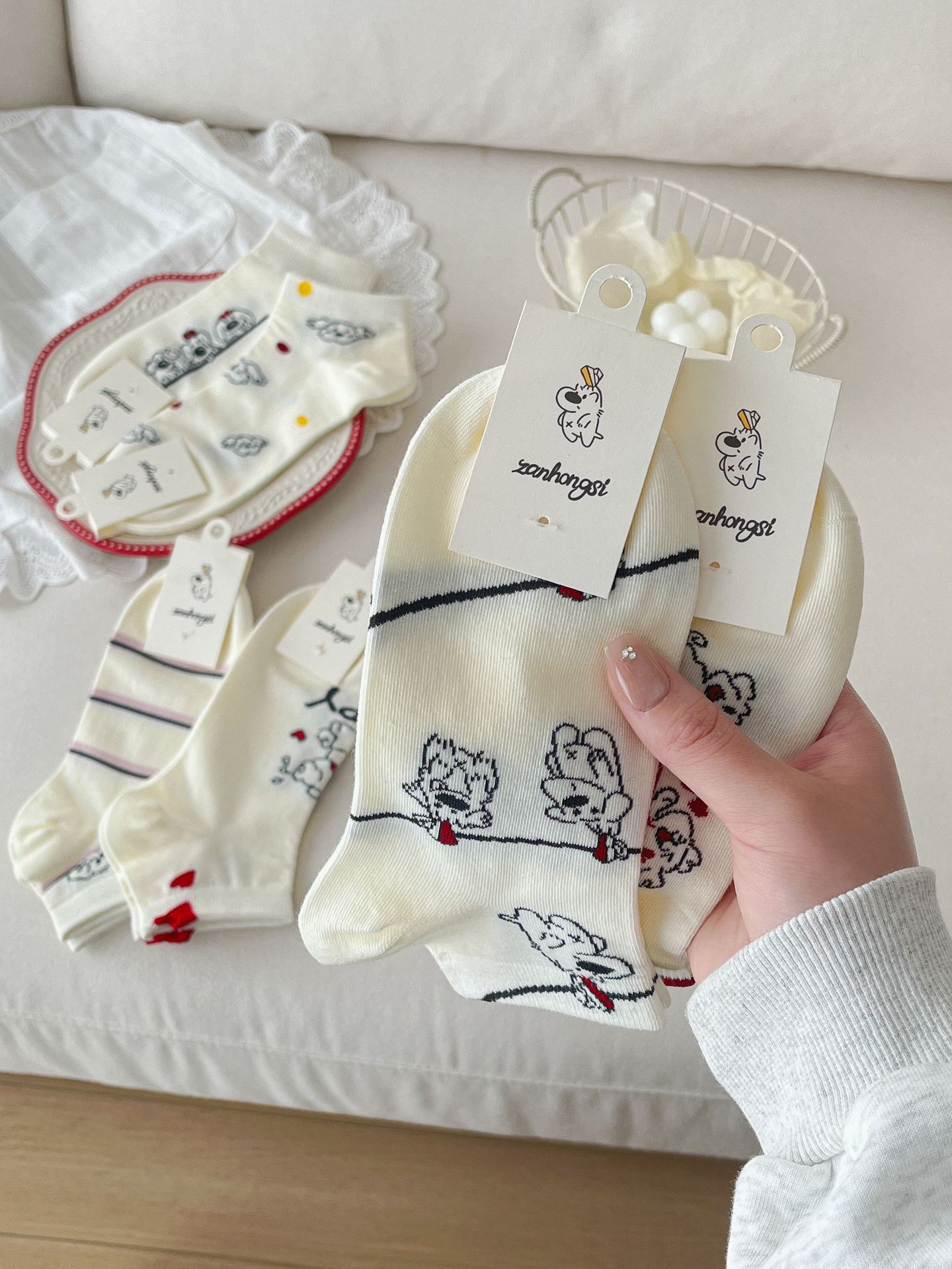 만화 유행 봄과 여름 얕은 입 보트 양말 강아지 양말 인터넷 연예인 라인 귀여운 면 짧은 튜브 통기성 여성 양말