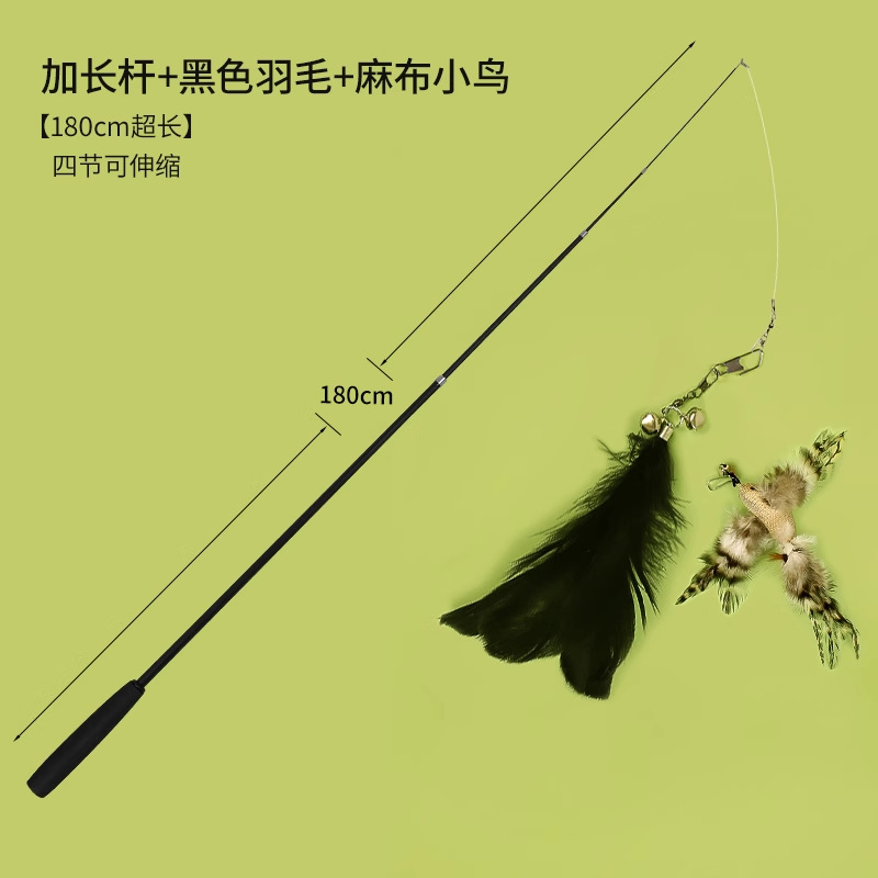 • 확장형 텔레스코픽 고양이 웃긴 스틱 + 검은색 깃털 머리 + 단색 리넨 새 머리