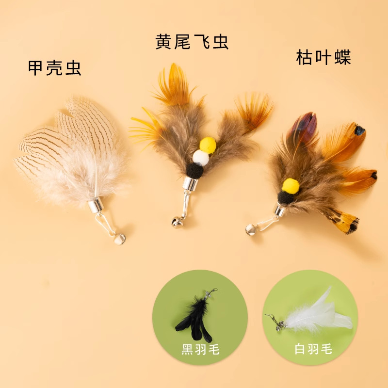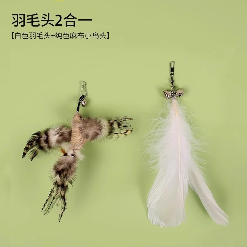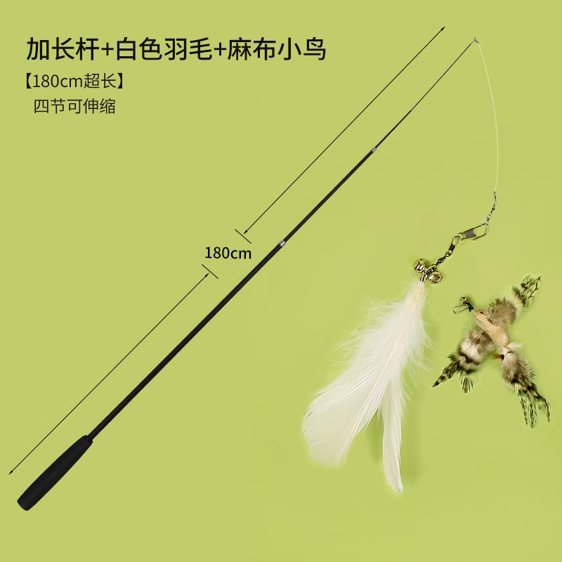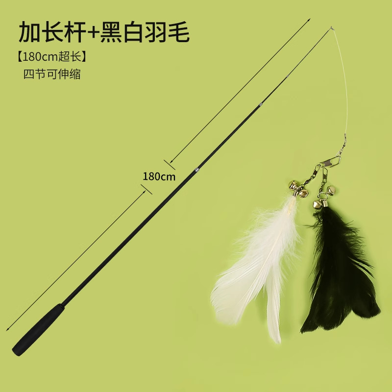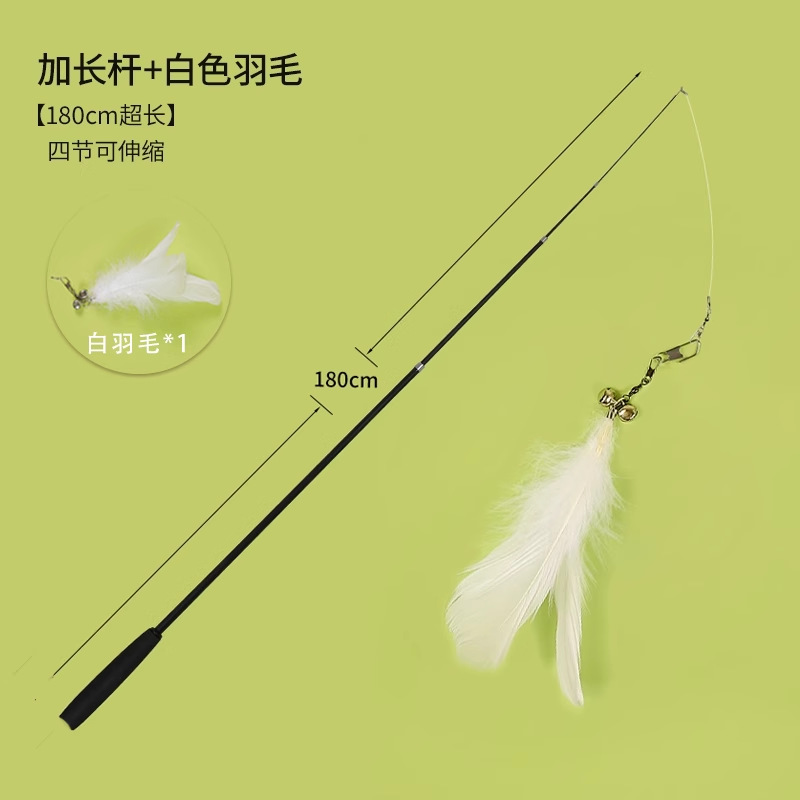 • 확장형 텔레스코픽 고양이 웃긴 막대 + 깃털 교체 헤드*1+흰색 깃털 교체 헤드*2
