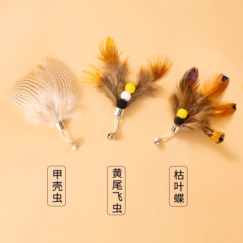 • 나무 손잡이 고양이 놀리는 막대 + 작은 비행 곤충 교체 헤드*3
