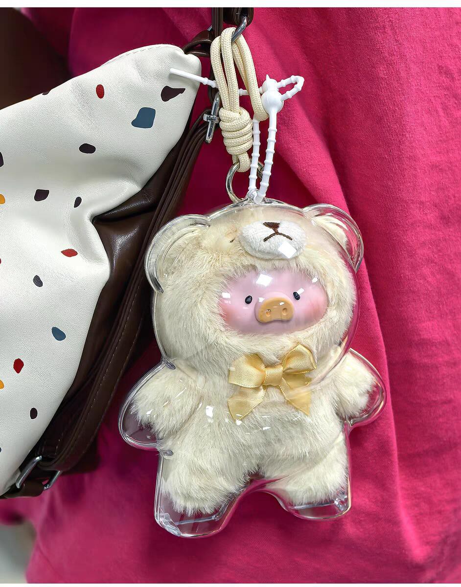 LuLu 돼지 보호 커버 비닐 플러시 펜던트 투명 보호 쉘 코튼 인형 통증 가방 15cm 아기 가방 먼지 커버