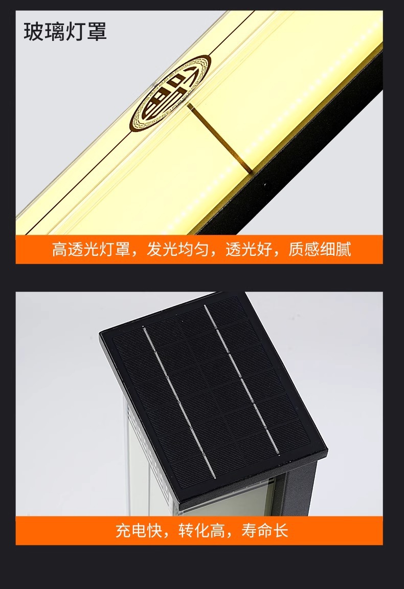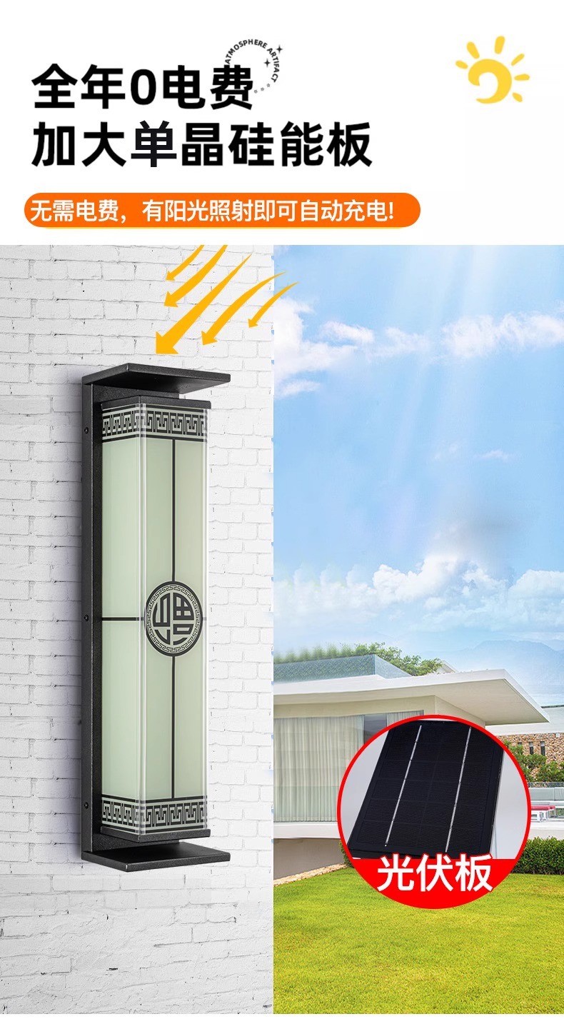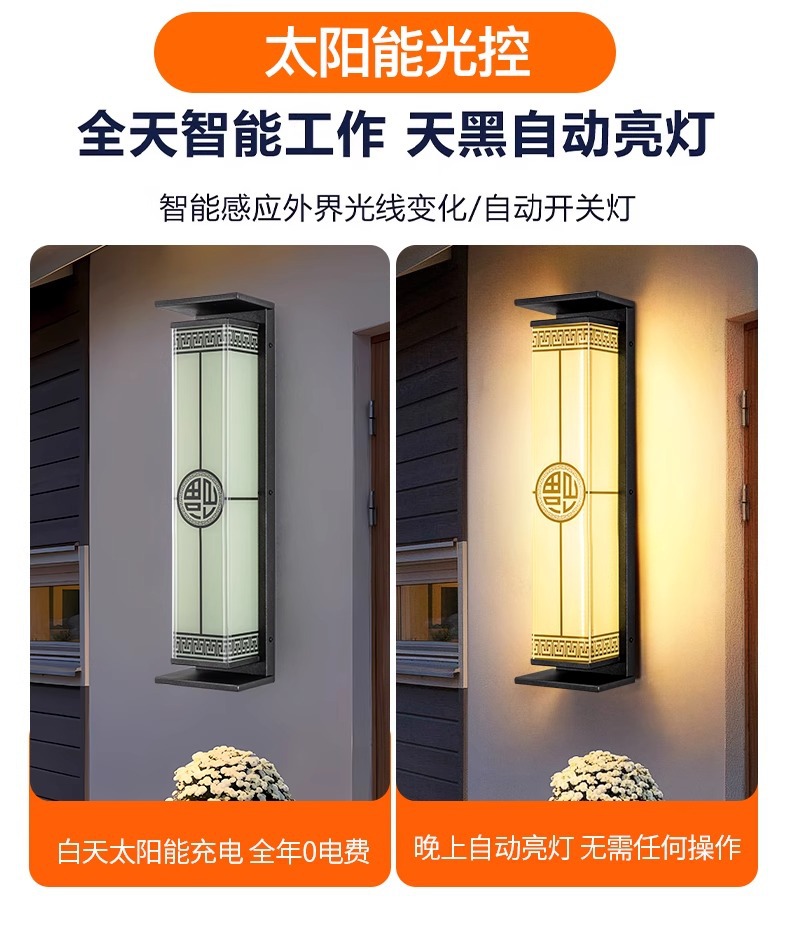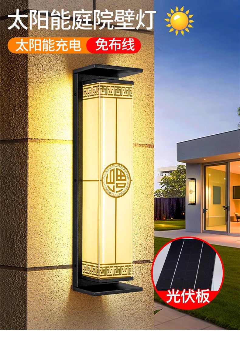 새로운 중국 스타일의 태양열 야외 벽 램프 방수 빌라 안뜰 문 외부 벽 램프 야외 테라스 벽 램프