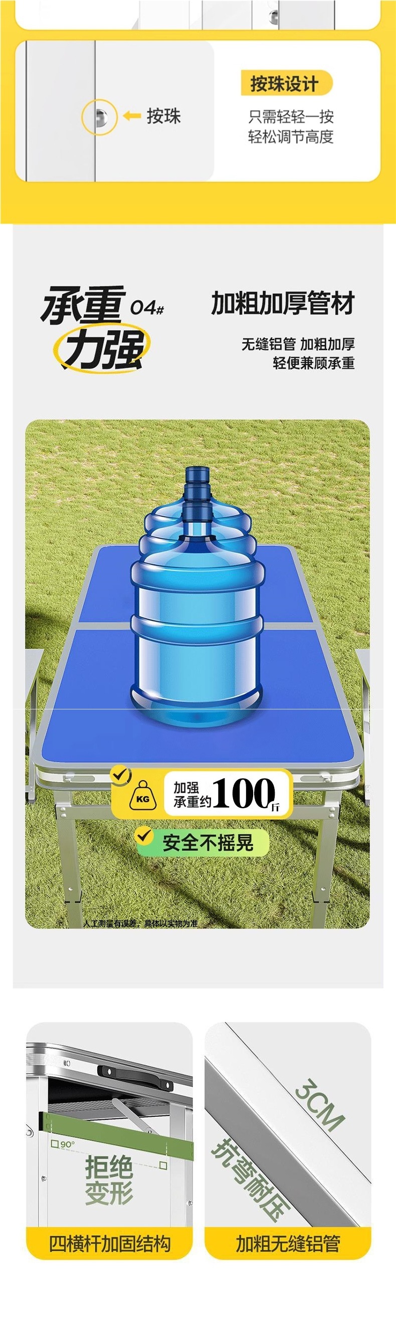 • 업그레이드된 품질 [업그레이드된 알루미늄 합금 사각 튜브] 120*60cm 블루 + 알루미늄 스툴 4개
