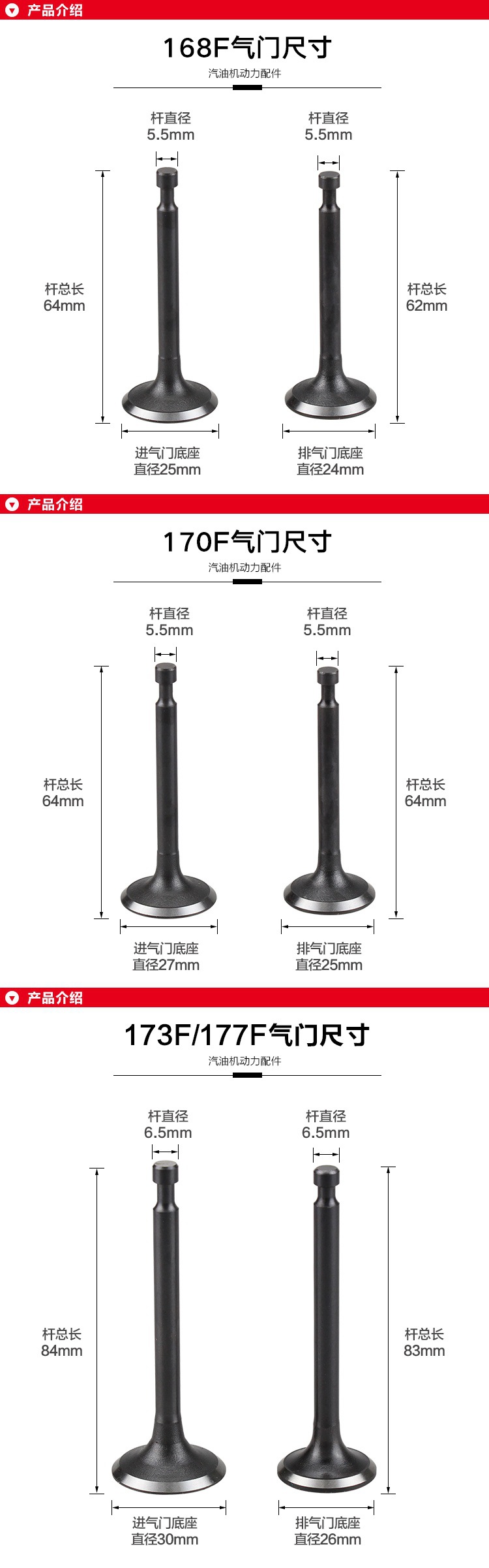 가솔린 발전기 워터 펌프 액세서리 152F168/170F 흡기 및 배기 밸브 173/177F188/190F 밸브 스템스토어 가기