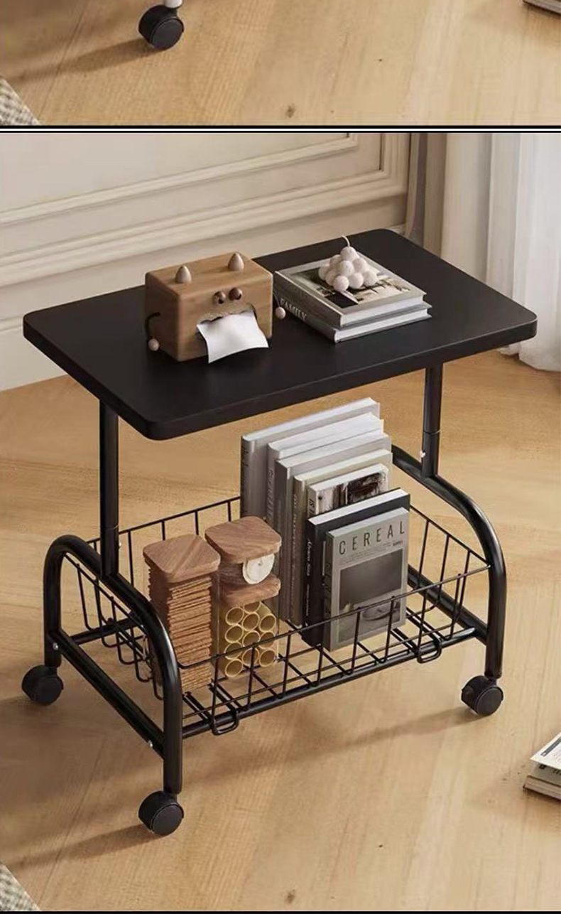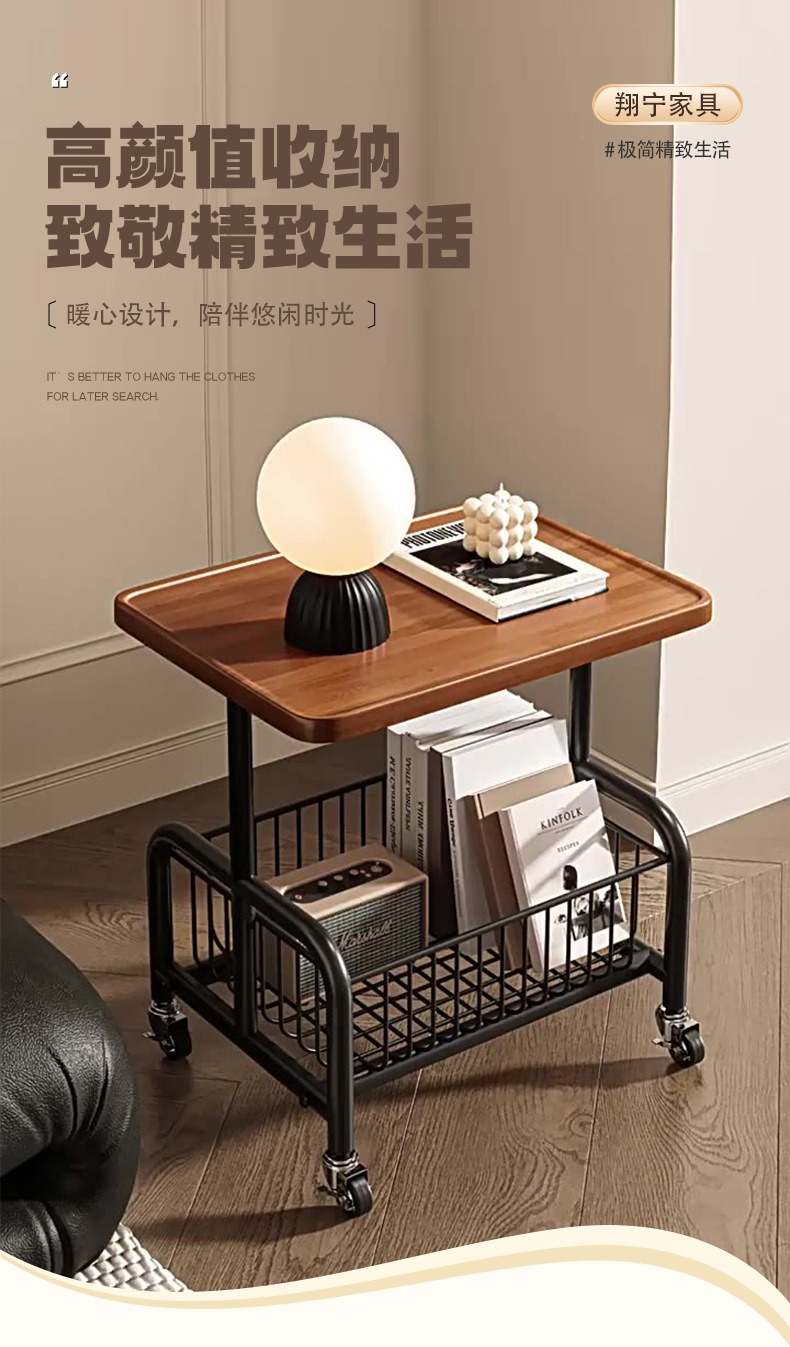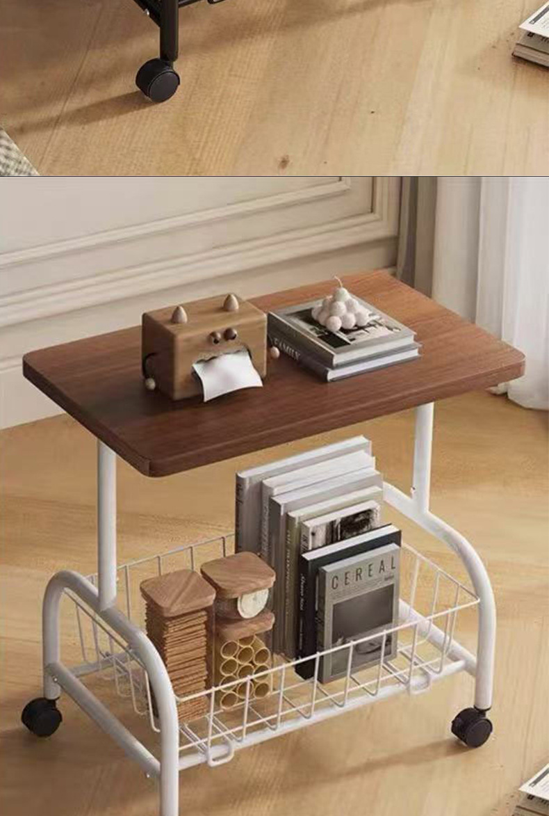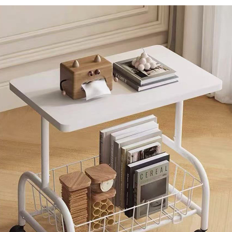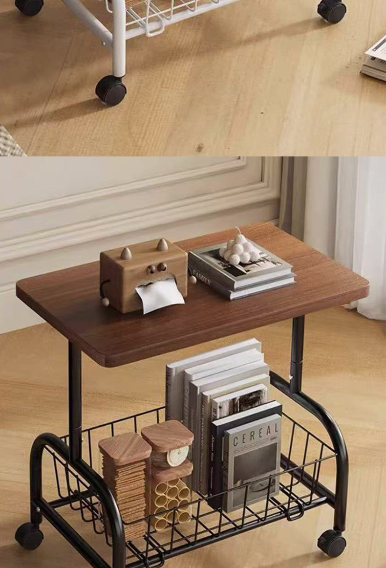 국경 간 이동식 이중 커피 테이블 트롤리 사이드 테이블 거실 소파 발코니 크림 작은 테이블 스토리지 랙