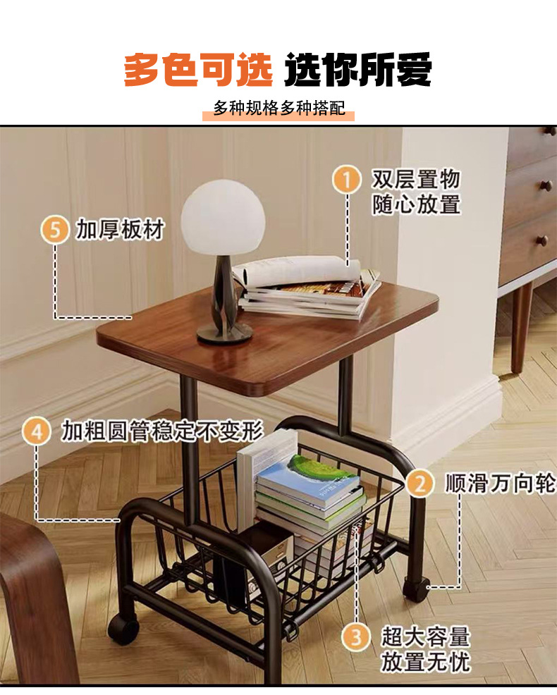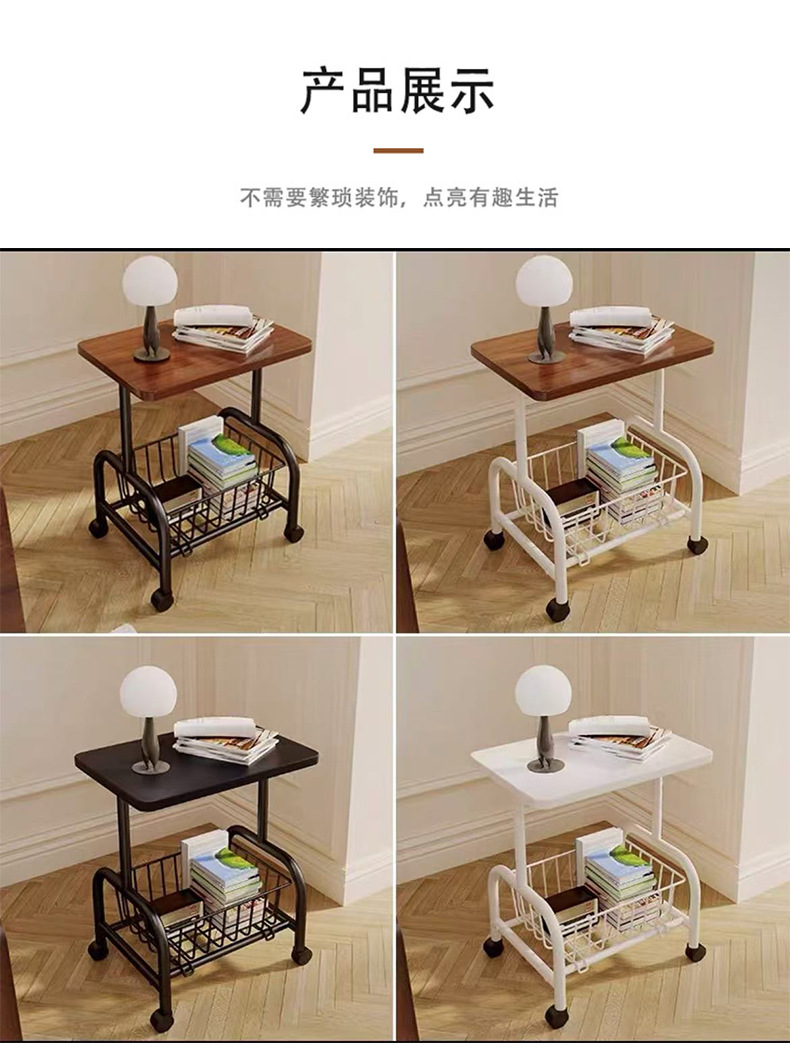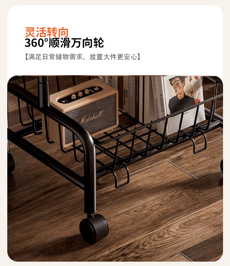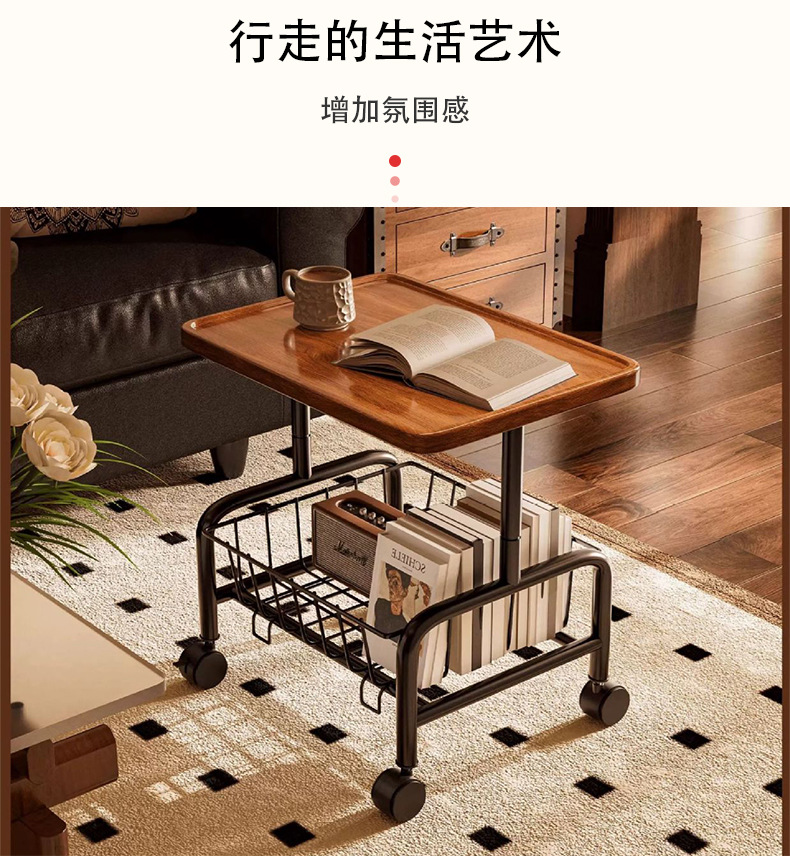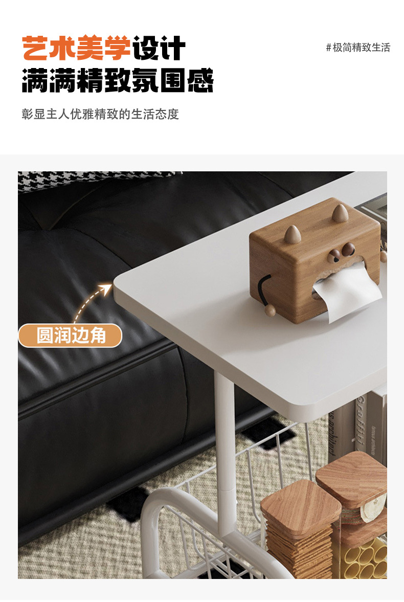 국경 간 이동식 이중 커피 테이블 트롤리 사이드 테이블 거실 소파 발코니 크림 작은 테이블 스토리지 랙