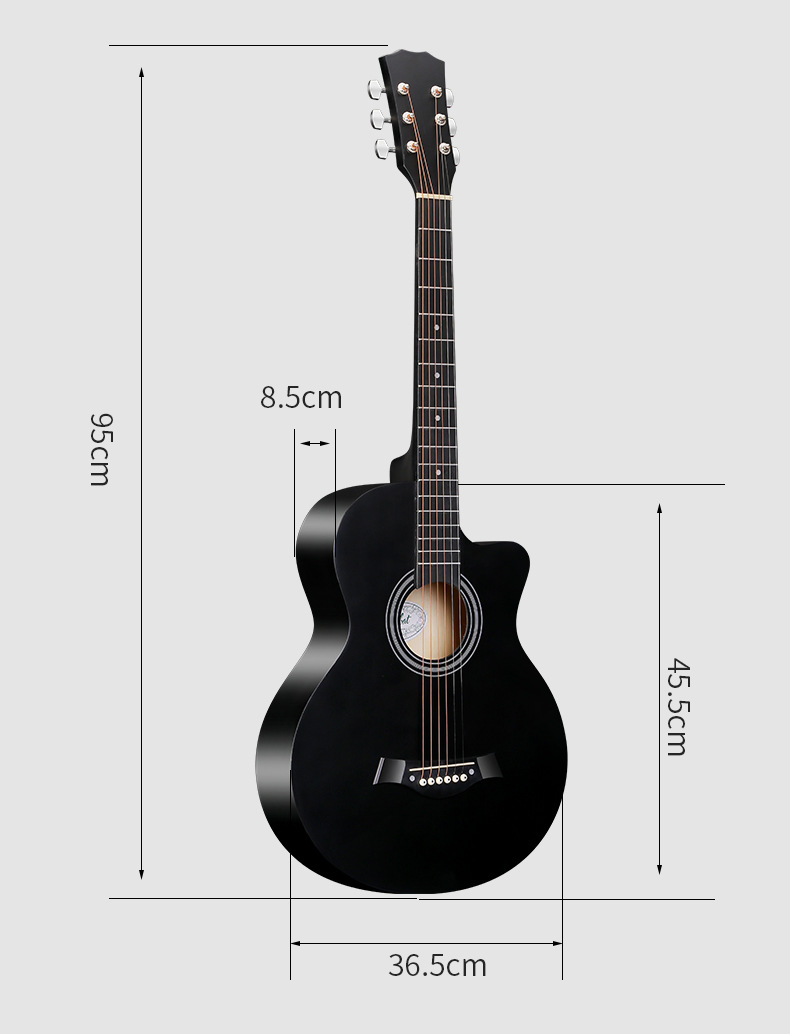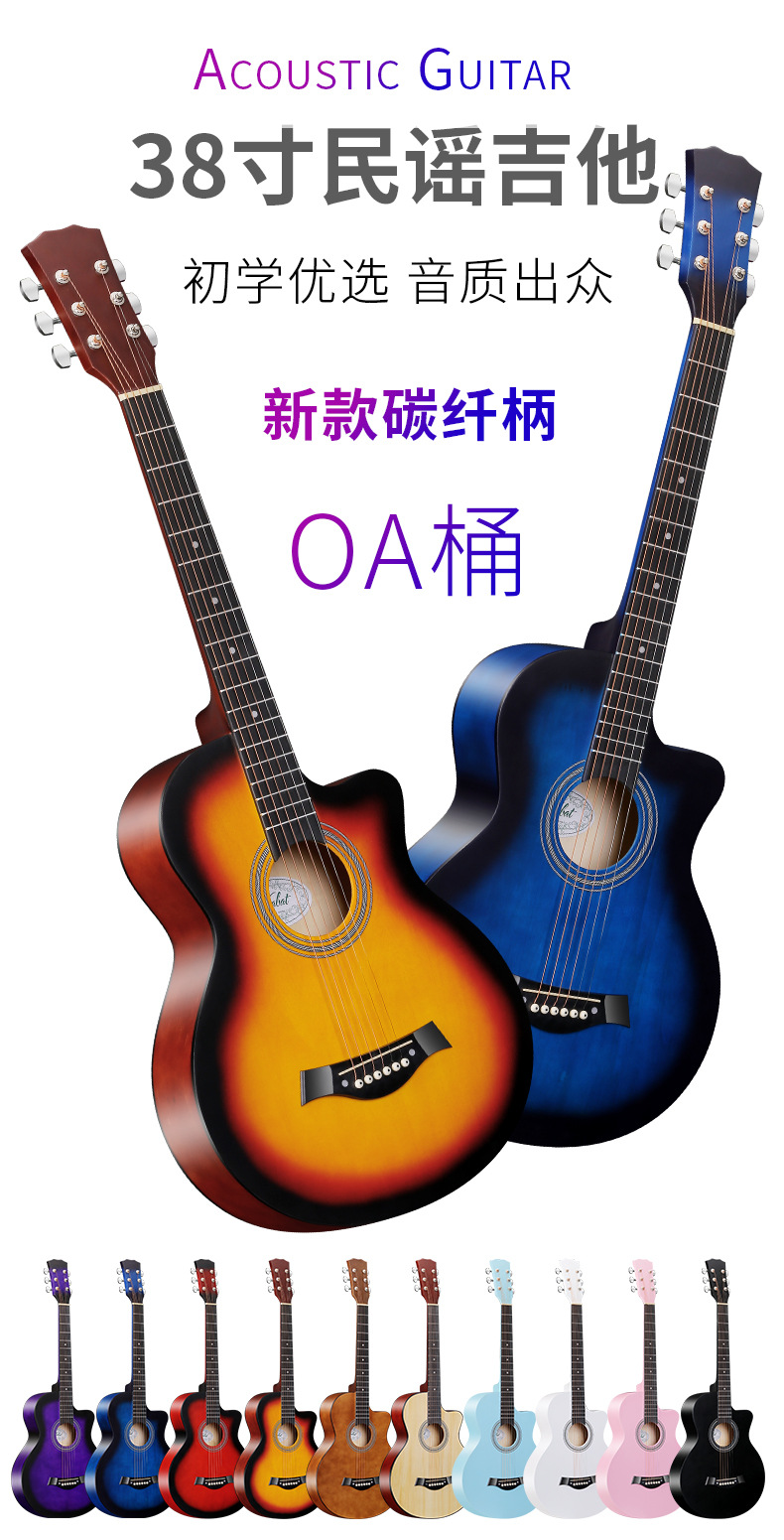 38inch 기타 새로운 탄소 건반 핸들 OA 배럴 기타 민속 초보자 기타 대량 재고 있음 제조 업체 도매스토어 가기