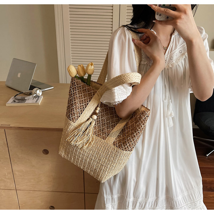 여성을위한 여름 밀짚 가방 2025 새로운 패션 대용량 통근 토트 백 해변 휴가 해변 가방스토어 가기