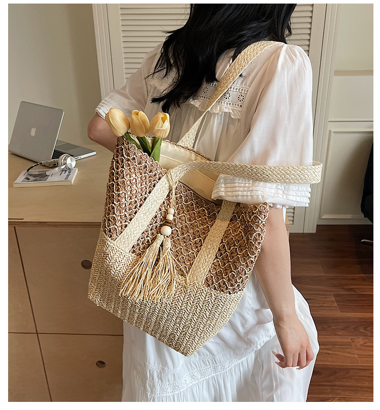 여성을위한 여름 밀짚 가방 2025 새로운 패션 대용량 통근 토트 백 해변 휴가 해변 가방