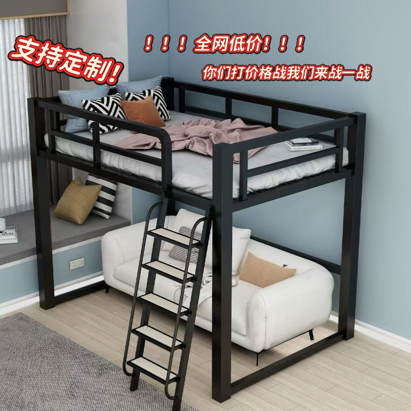 소형 아파트 기숙사 임대 주택 철제 침대 높은 침대 시트 더블 침대 아래 테이블 공간 절약형 이층 침대스토어 가기