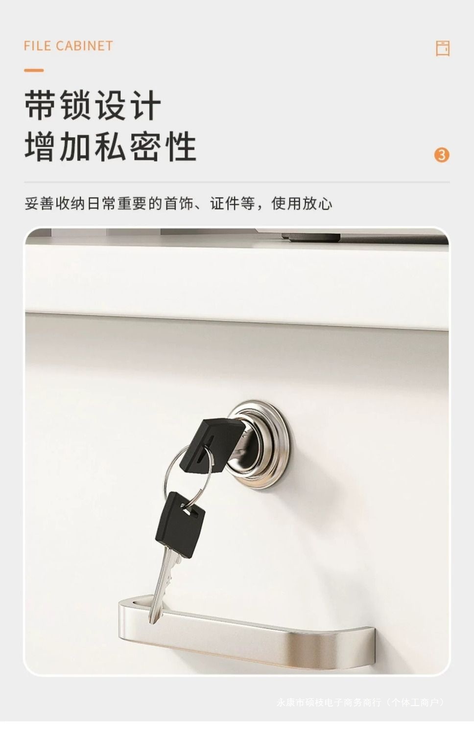 • [서랍 3개, 수납공간 2개, 잠금장치 및 도르래가 있는 문 스타일 1개] 따뜻한 흰색