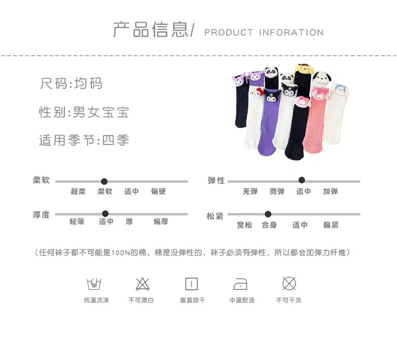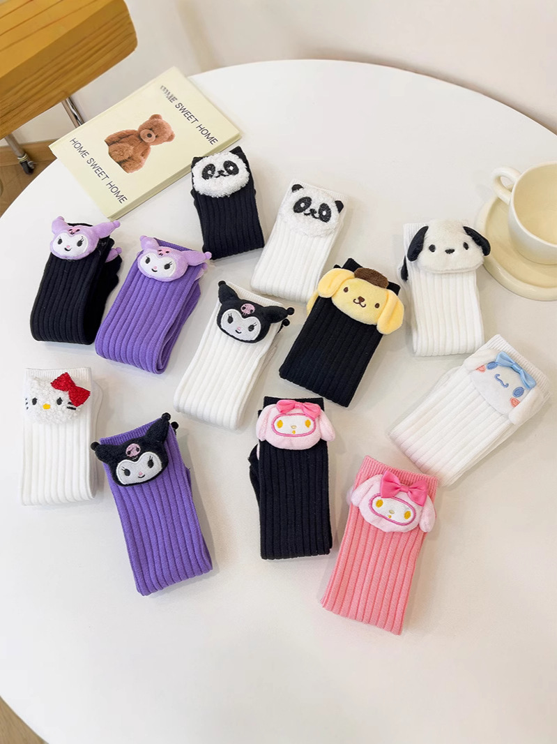 어린이 양말 만화 쿠로미 인형 순면 스타킹 귀여운 종아리 소녀 통기성 아기 중간 튜브