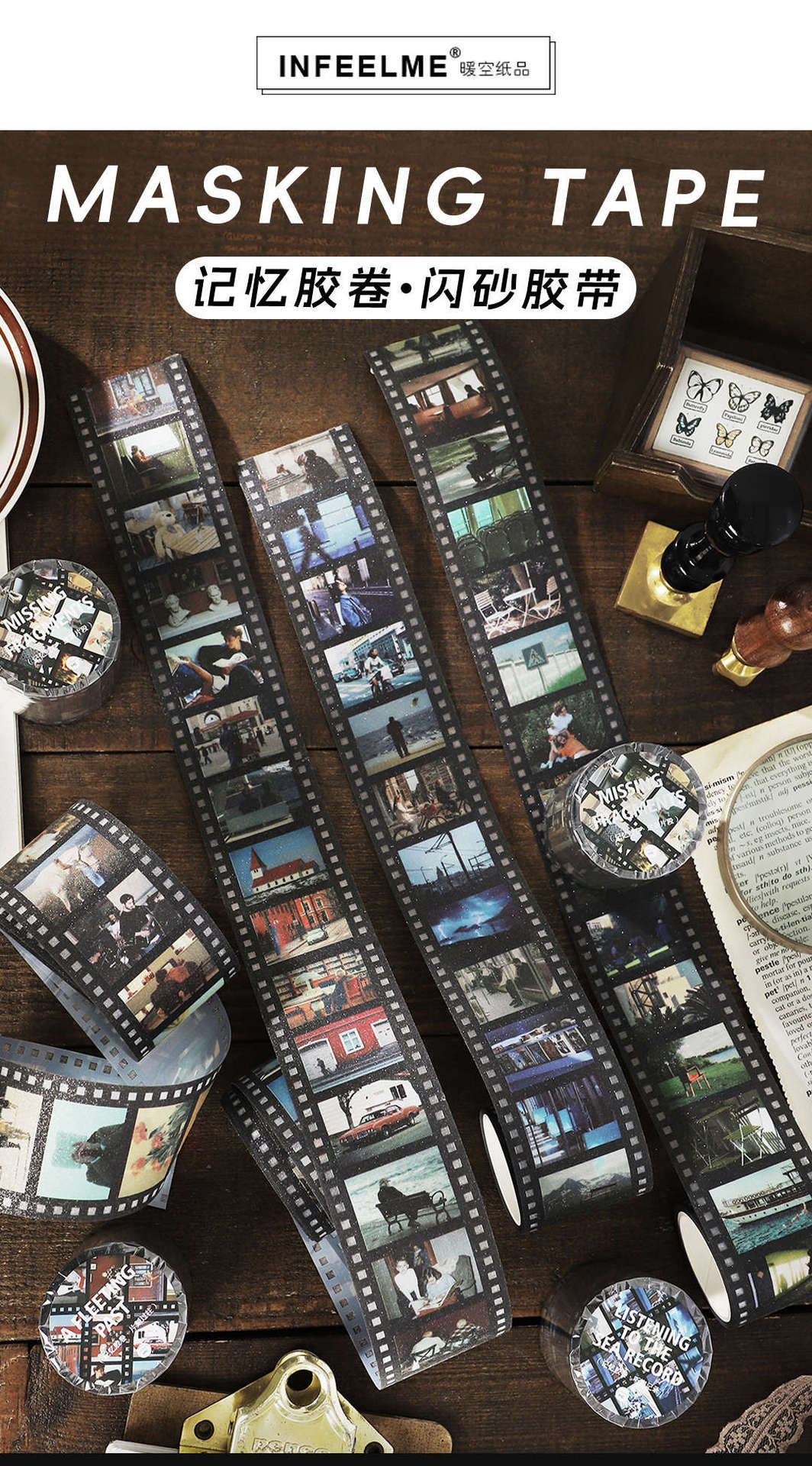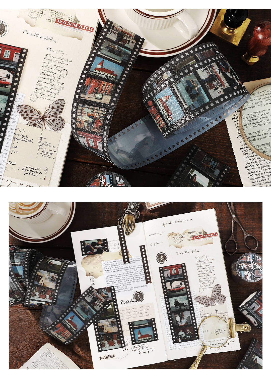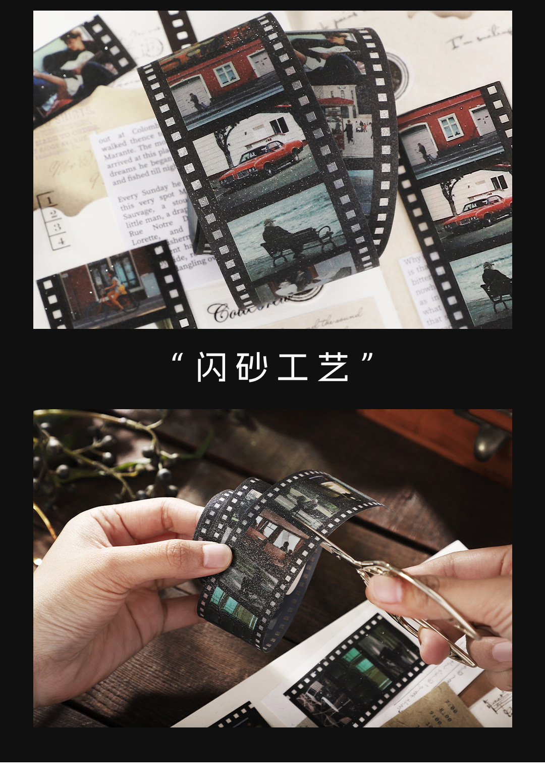 메모리 필름 PET 플래시 모래 테이프 복고풍 클래식 영화 필름 장면 핸드북 재료 장식 diy 스티커스토어 가기