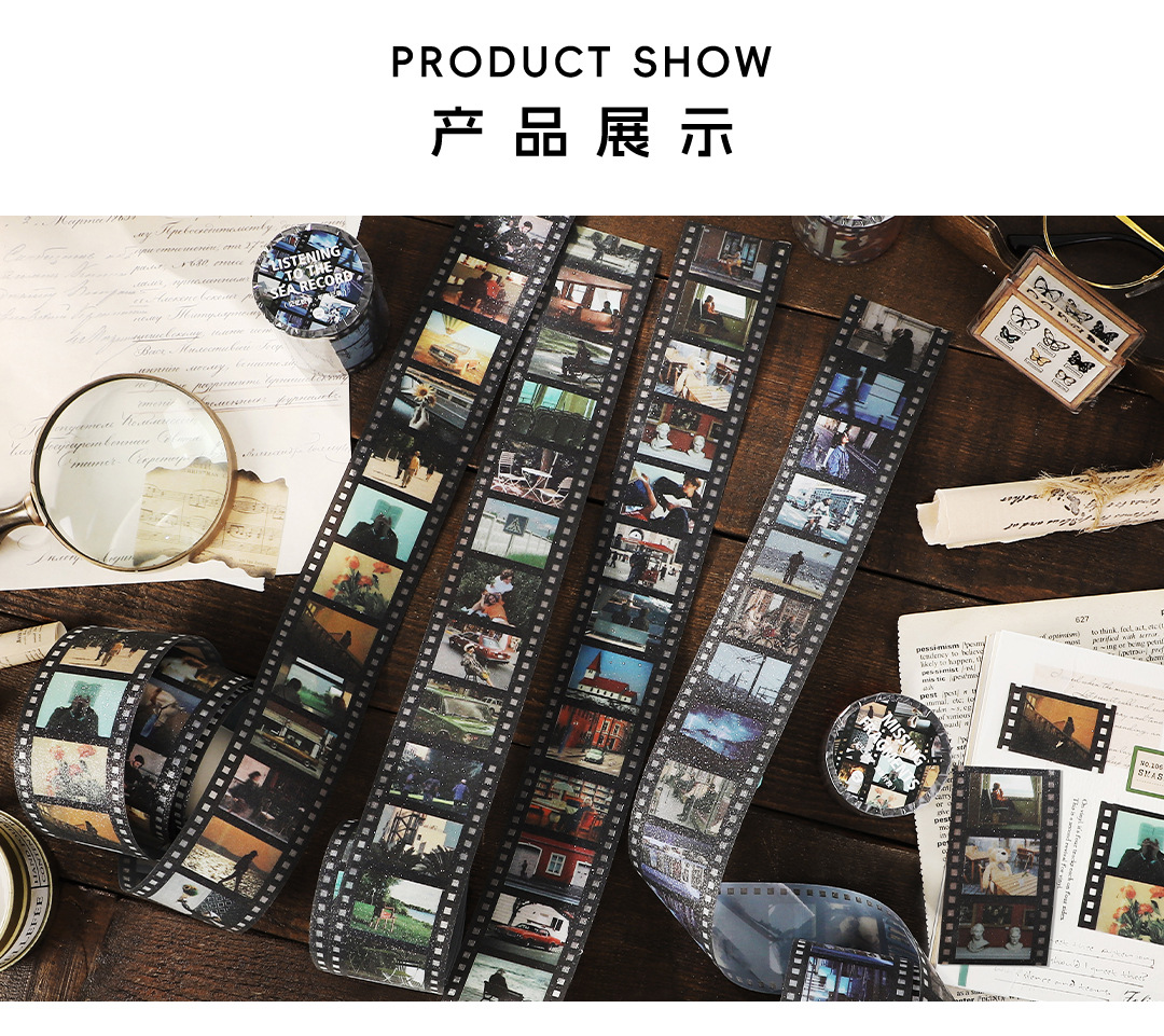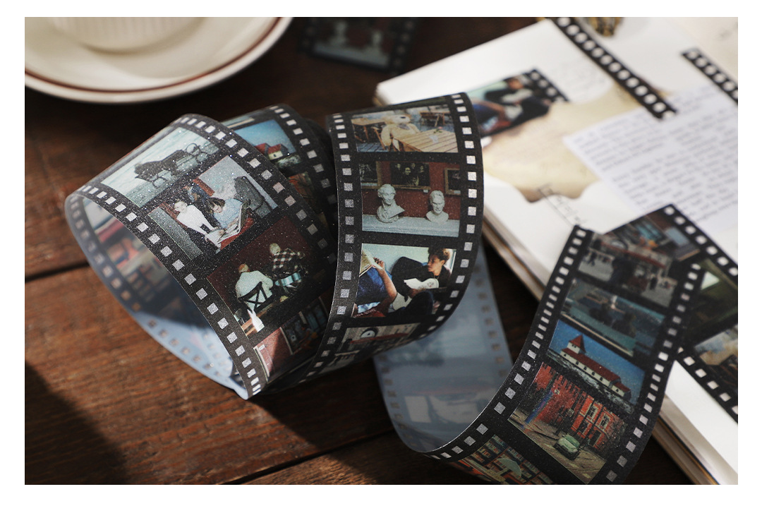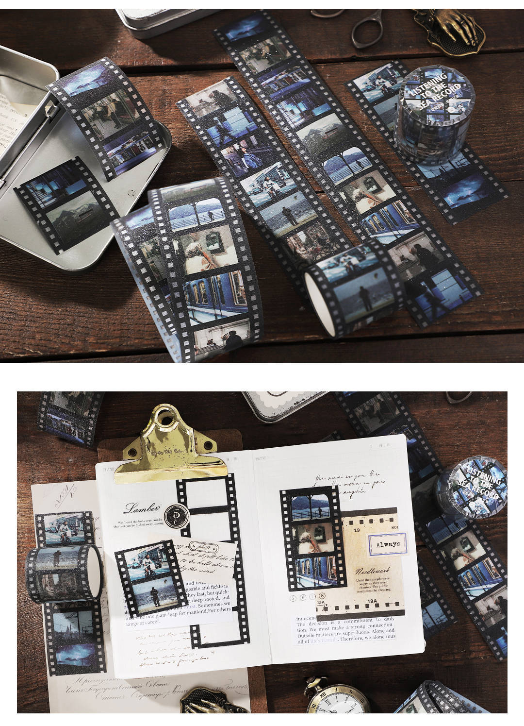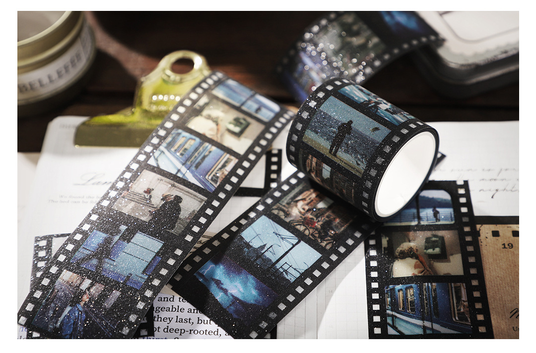 메모리 필름 PET 플래시 모래 테이프 복고풍 클래식 영화 필름 장면 핸드북 재료 장식 diy 스티커스토어 가기