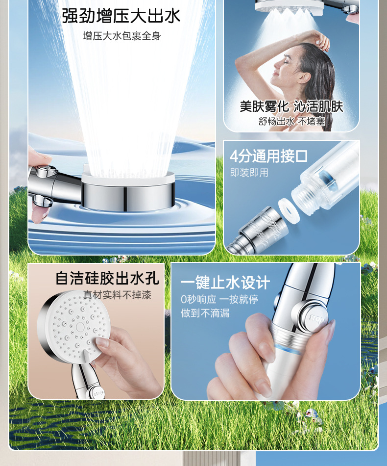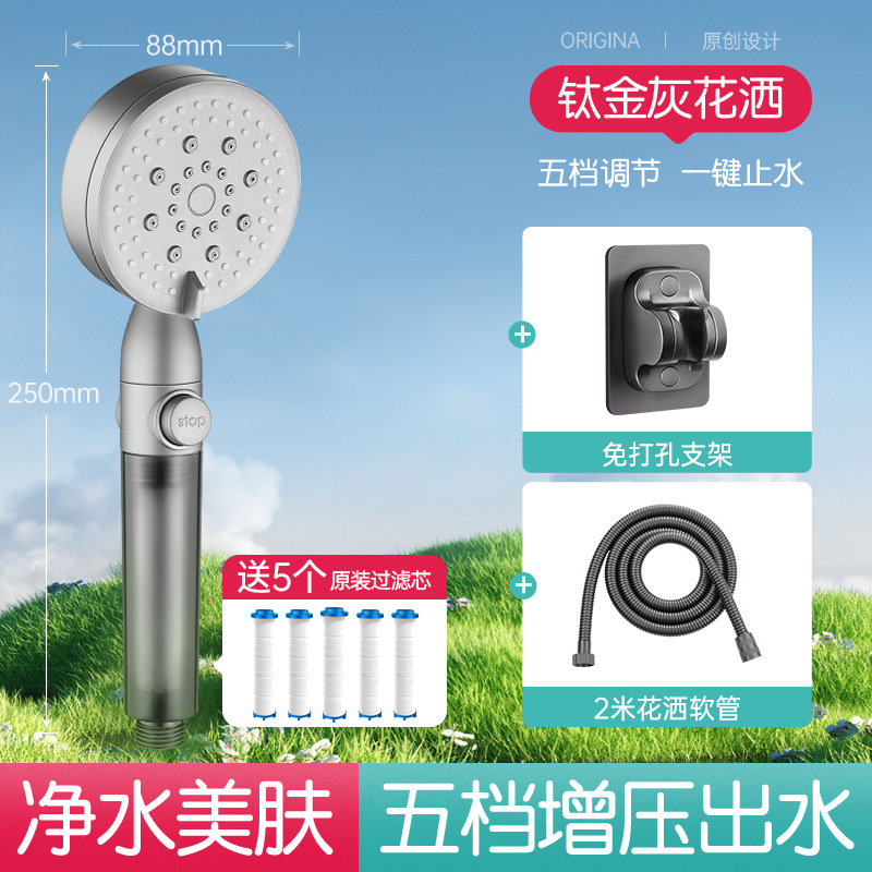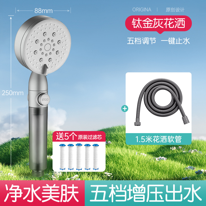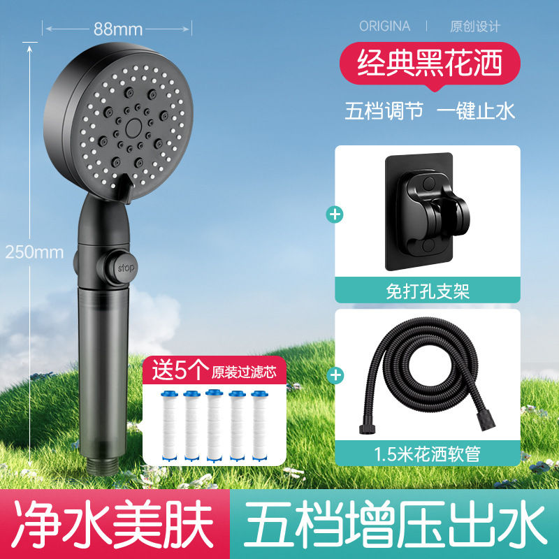 호스 세트가있는 가압 샤워 헤드 가정용 욕실 샤워 용 강력한 가압 레인 필터 샤워 헤드