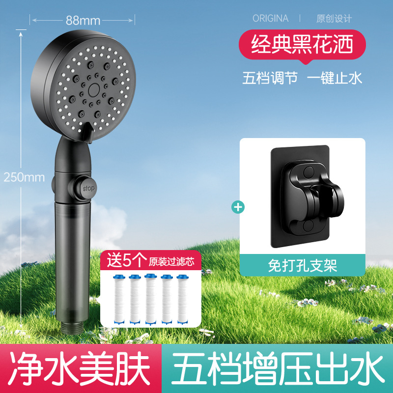 • [젠틀맨 블랙 세트 1] 슈퍼차지드 샤워기 + 펀치프리 브라켓 (필터엘리먼트 5개 무료)