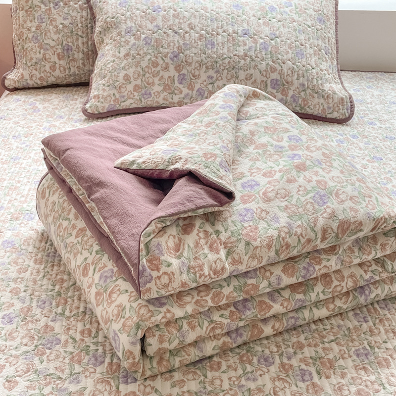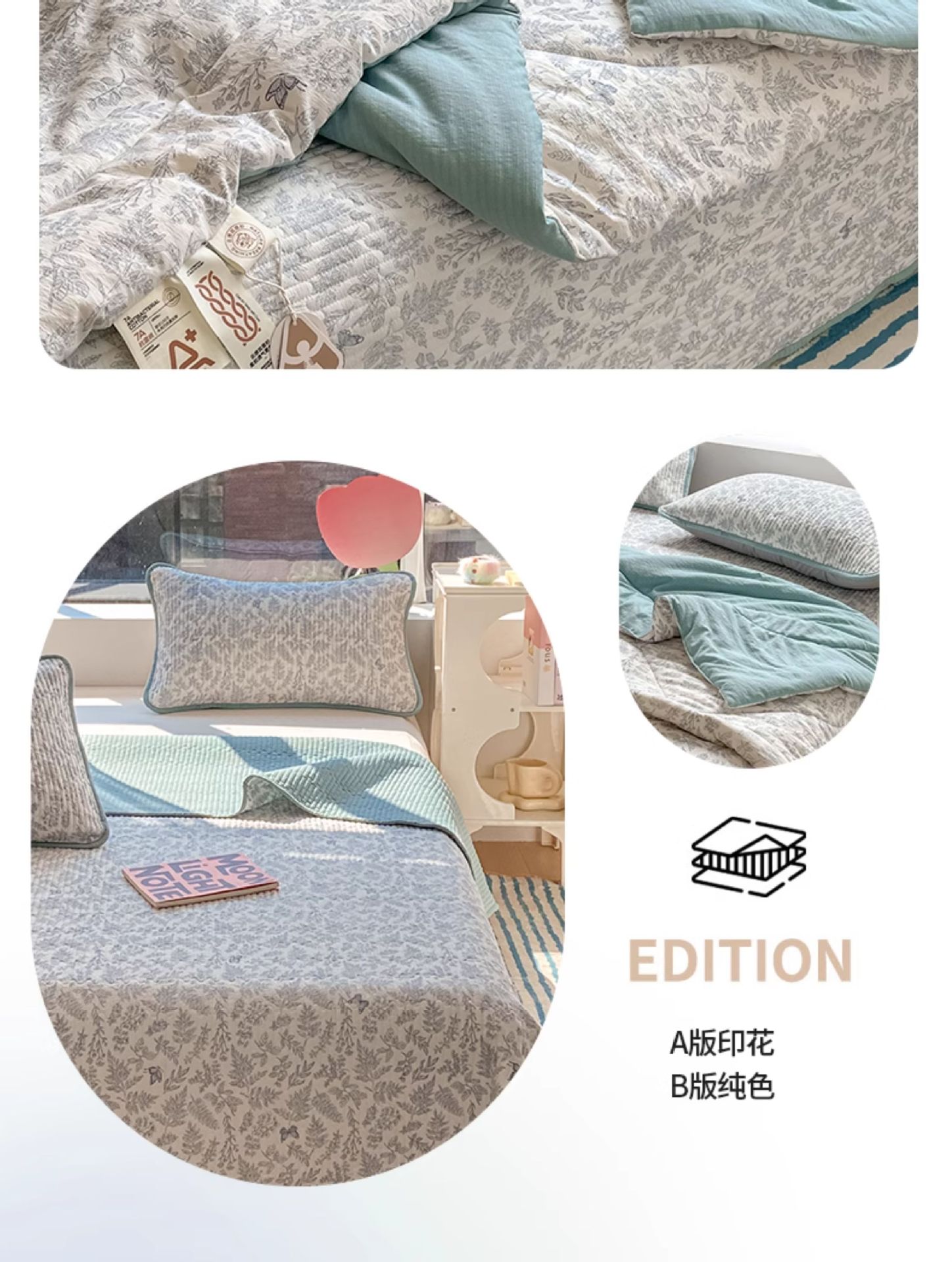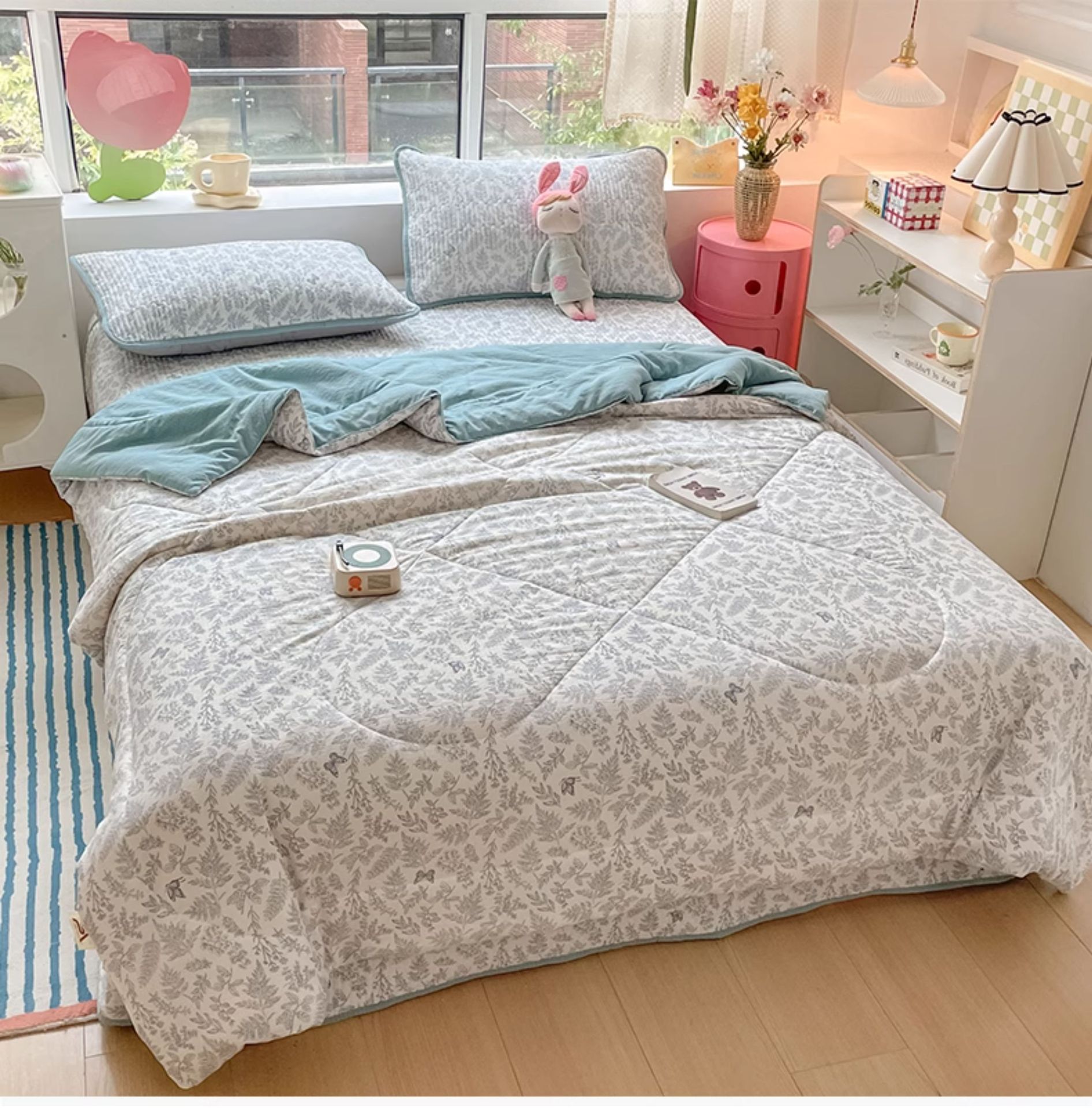 • 여름 이불 4종 세트 [200x230cm 여름 이불 + 220x245cm 침대 커버 + 베갯잇 한 쌍]