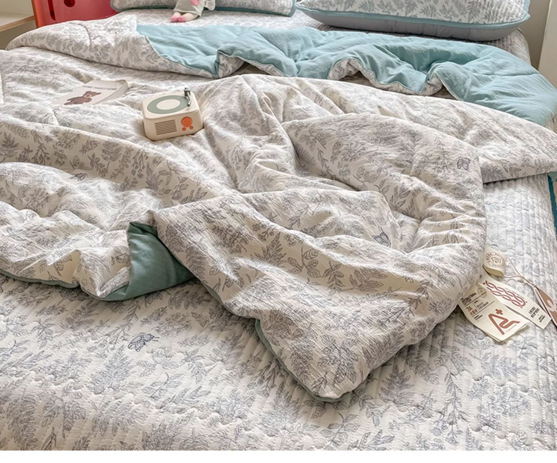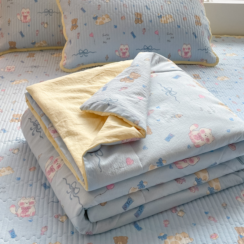 2025 새로운 더블 레이어 거즈 여름 이불 4 피스 에어컨 이불 여름 어린이 싱글 및 더블 기계 세탁 가능한 여름 이불