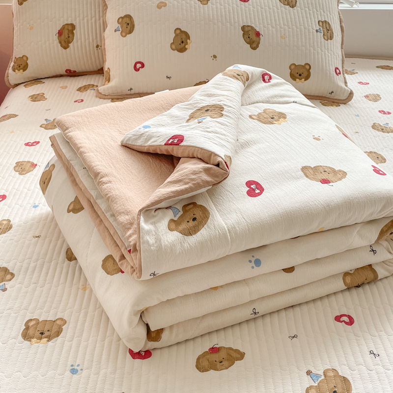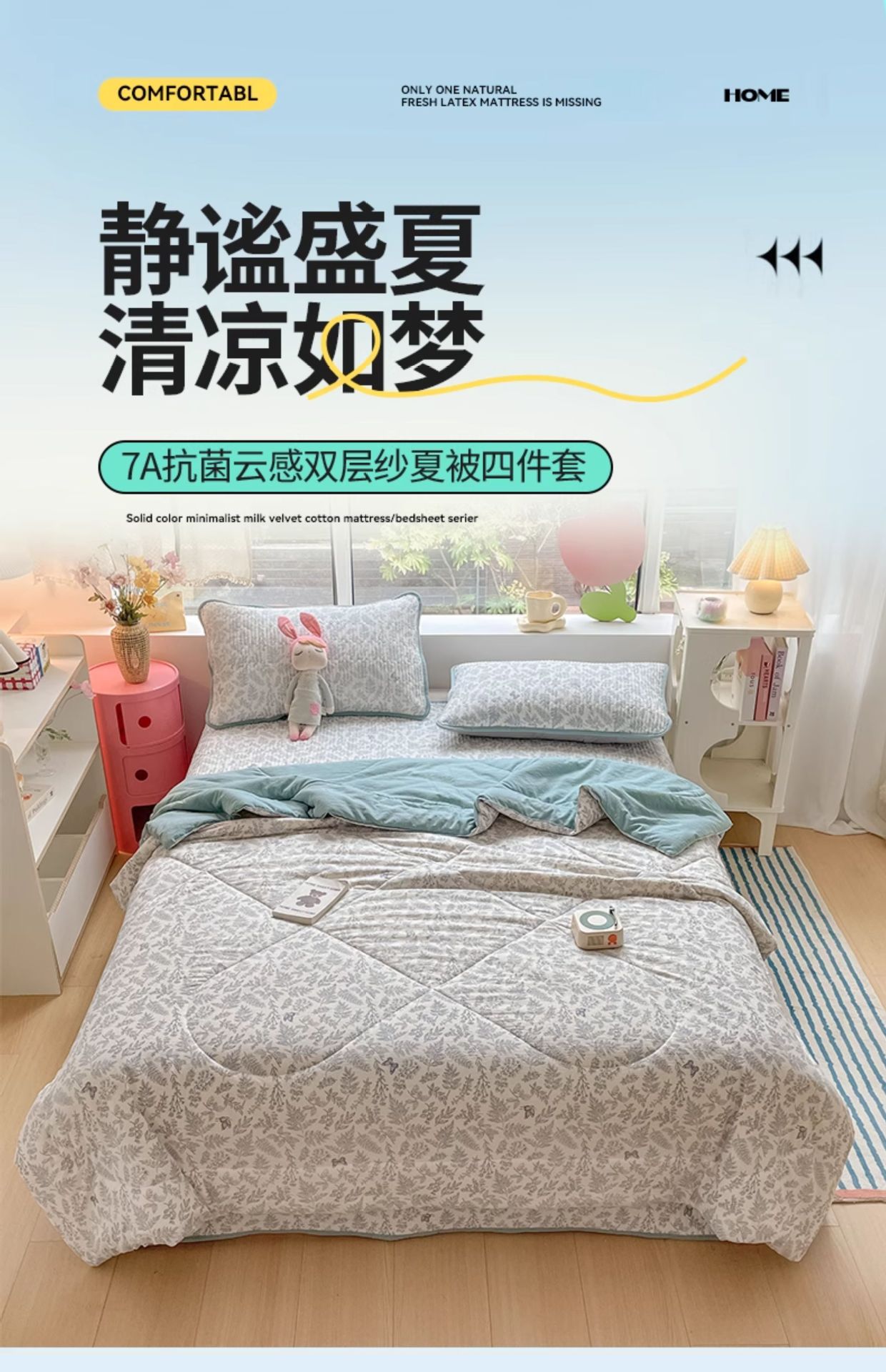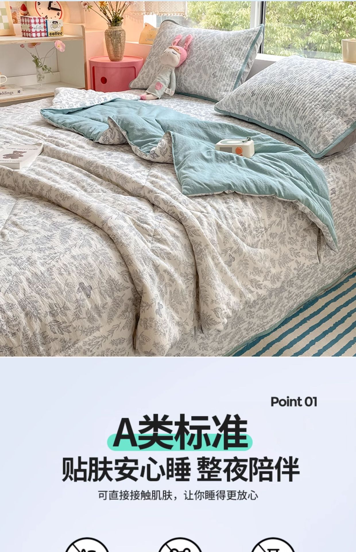 2025 새로운 더블 레이어 거즈 여름 이불 4 피스 에어컨 이불 여름 어린이 싱글 및 더블 기계 세탁 가능한 여름 이불스토어 가기
