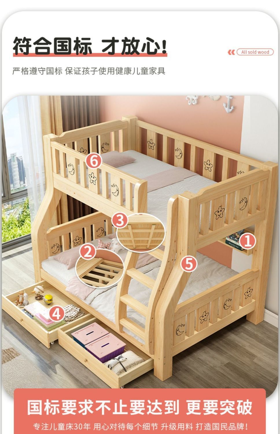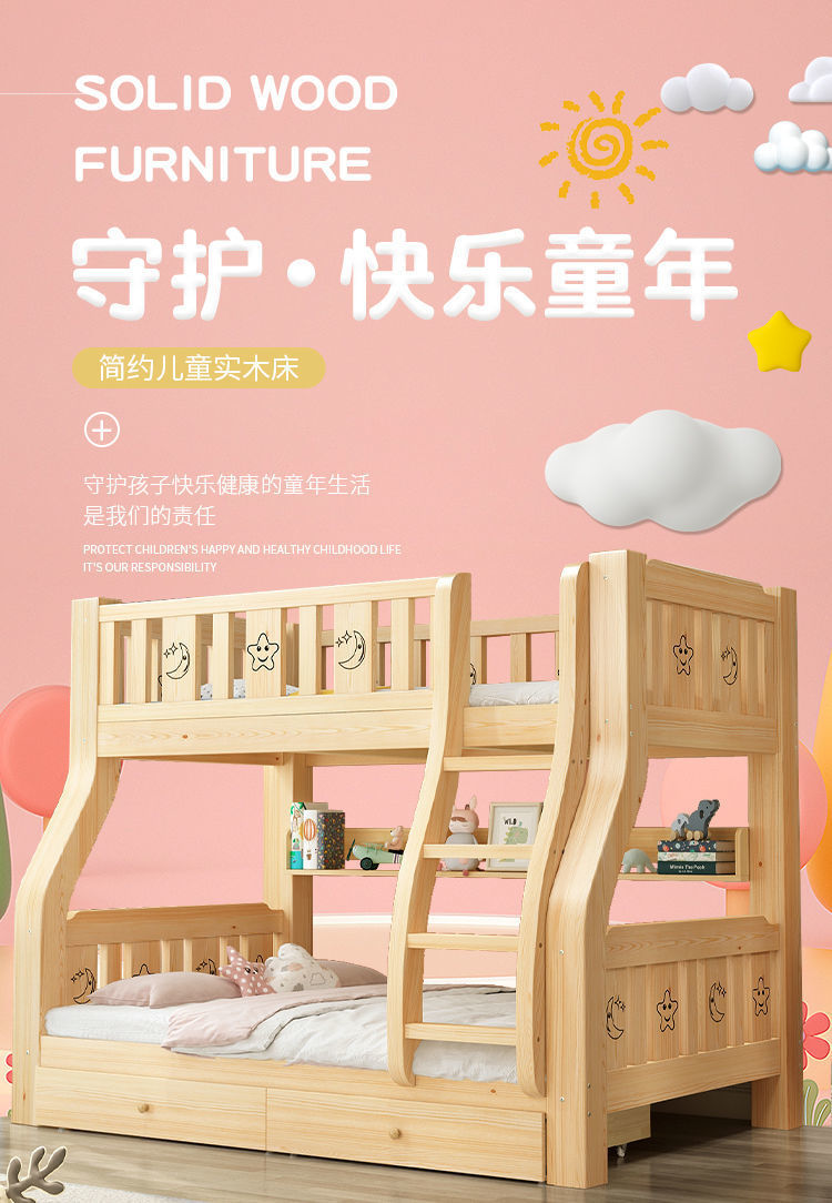 2층 침대, 2층 어린이 다기능 원목 성인 2층 침대, 소형 가정용 높낮이 침대 공장