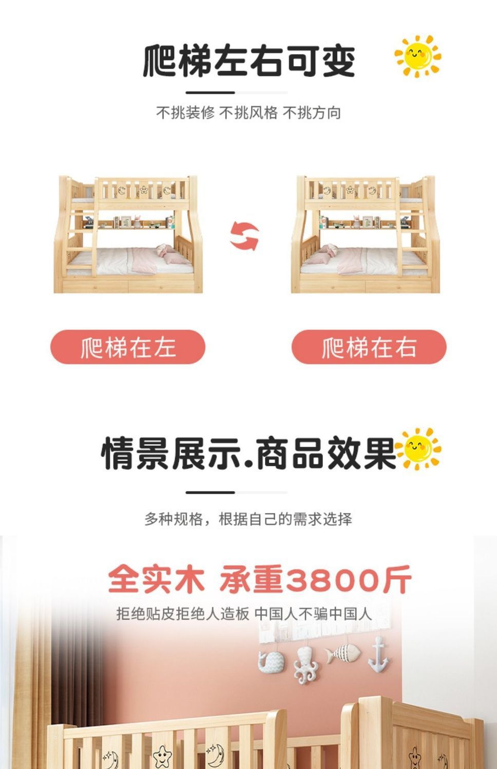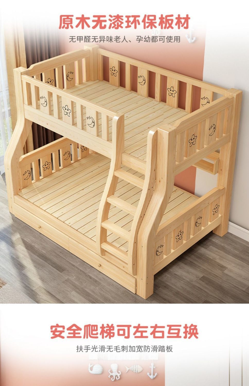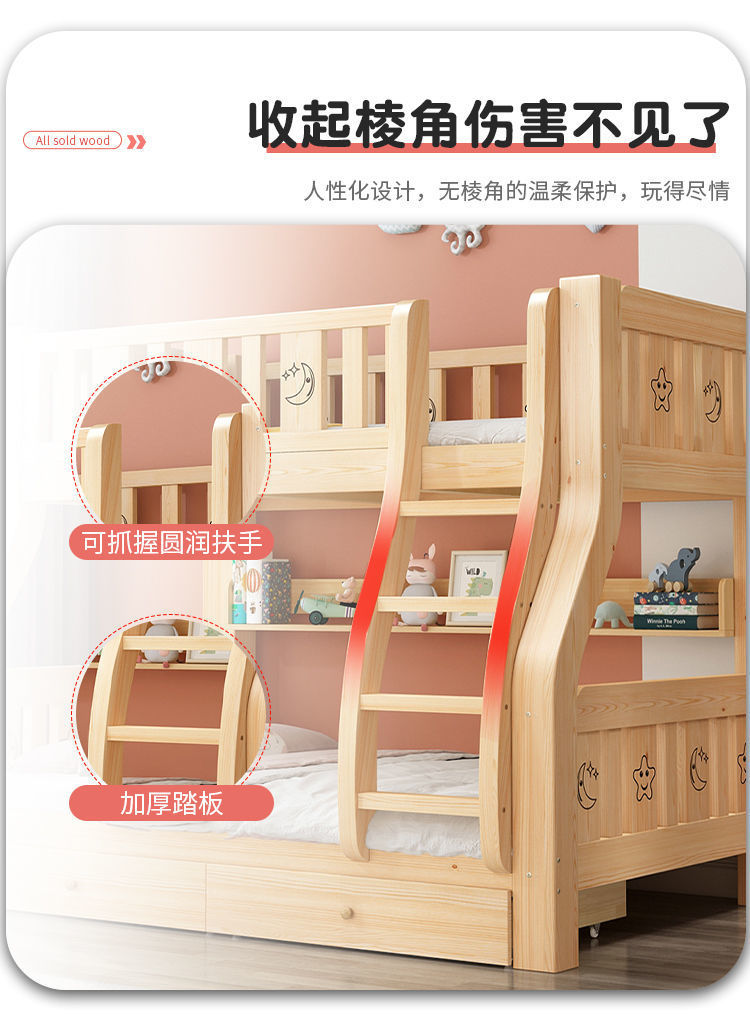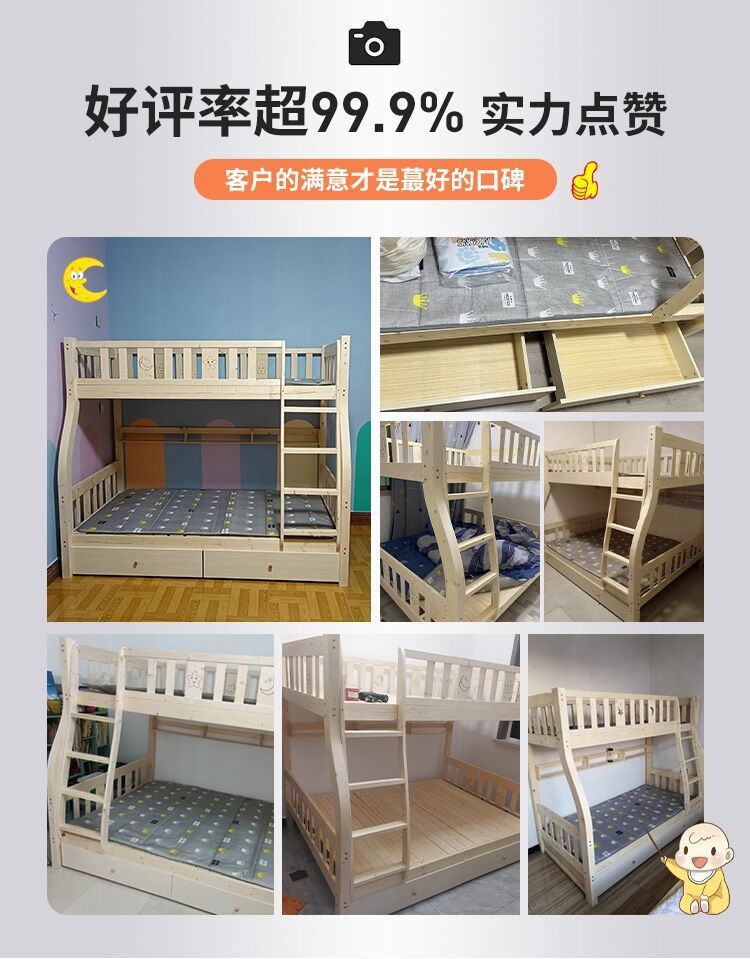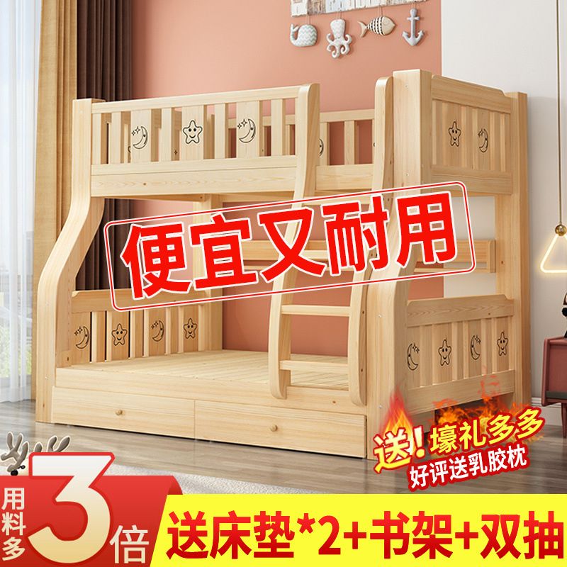 2층 침대, 2층 어린이 다기능 원목 성인 2층 침대, 소형 가정용 높낮이 침대 공장스토어 가기
