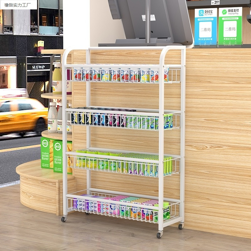 스낵 슈퍼마켓 소형 선반 다층 이동식 바퀴 달린 음료 마카롱 보관 랙 껌 디스플레이 랙 상업용스토어 가기
