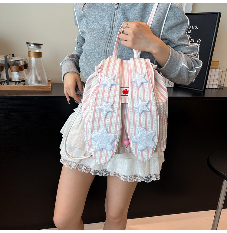 2025 새로운 대용량 배낭 토끼 귀 배낭 핑크 귀여운 학생 가방 한국 틈새 여성 가방스토어 가기