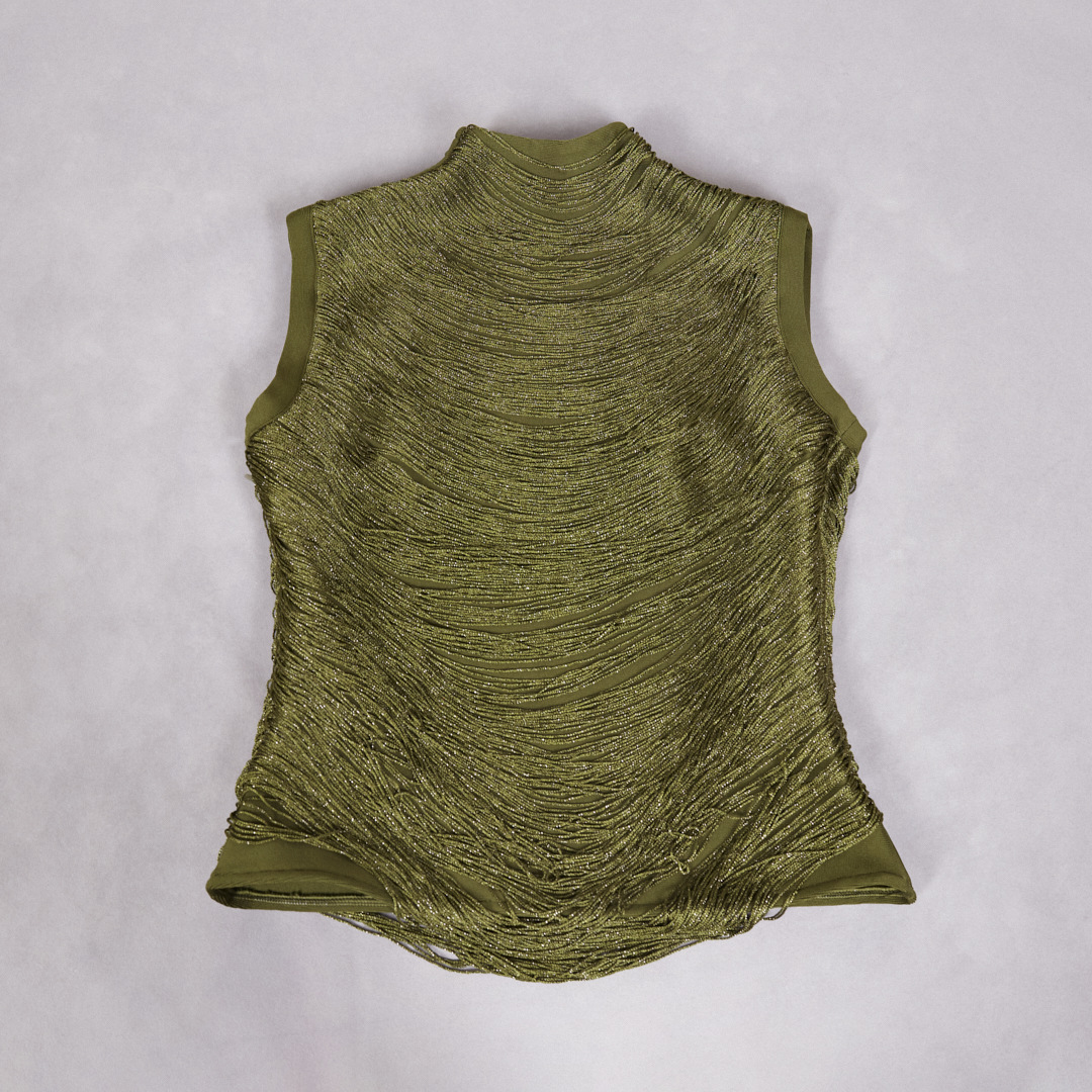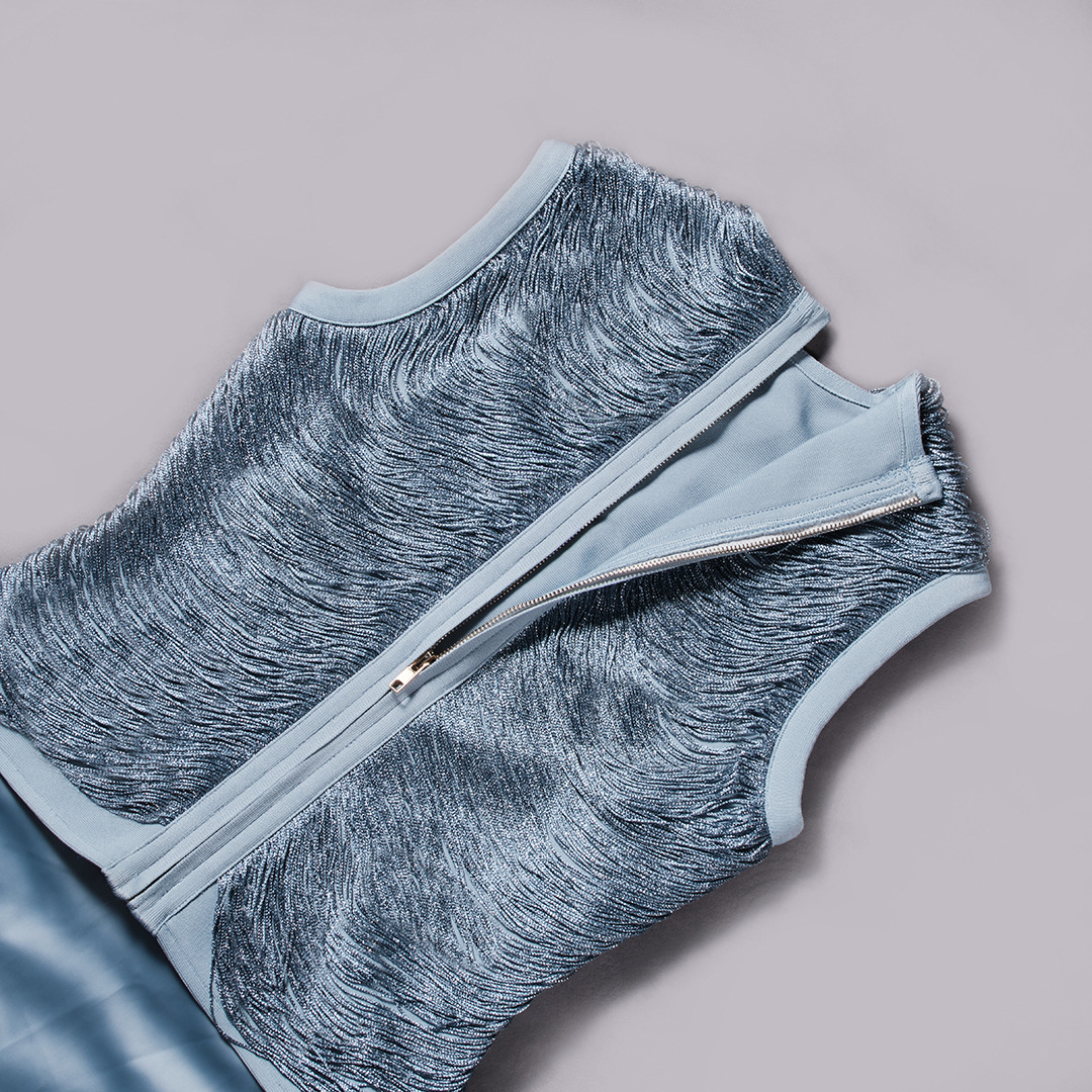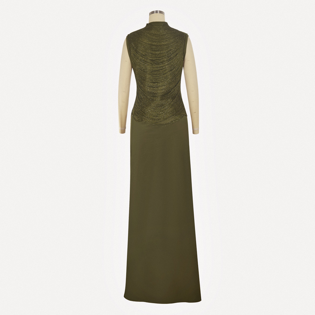 여성을위한 하이 엔드 투피스 양복 여름 새로운 민소매 하이 넥 태슬 스플 라이스 탑 새틴 스커트 슈트