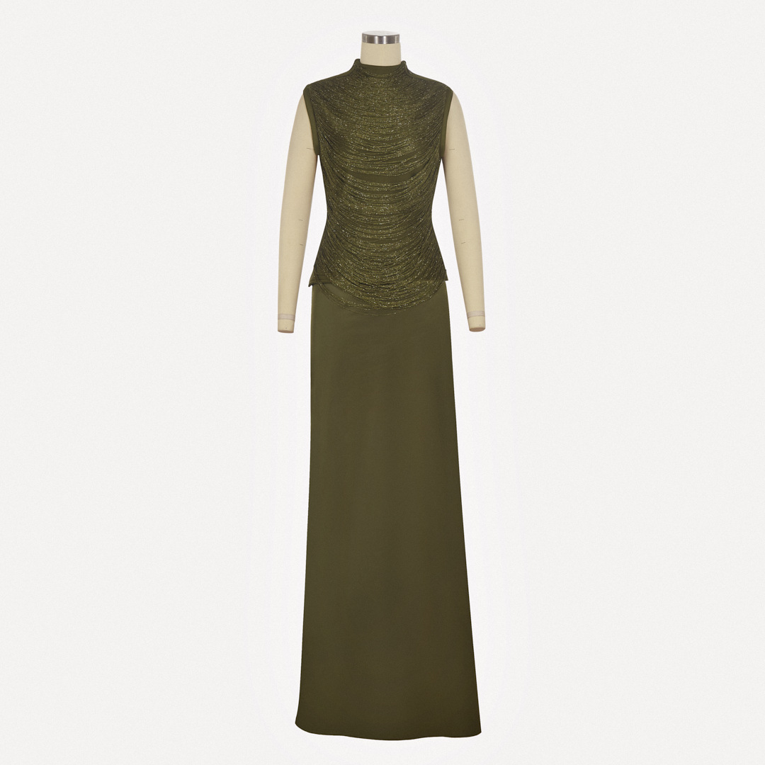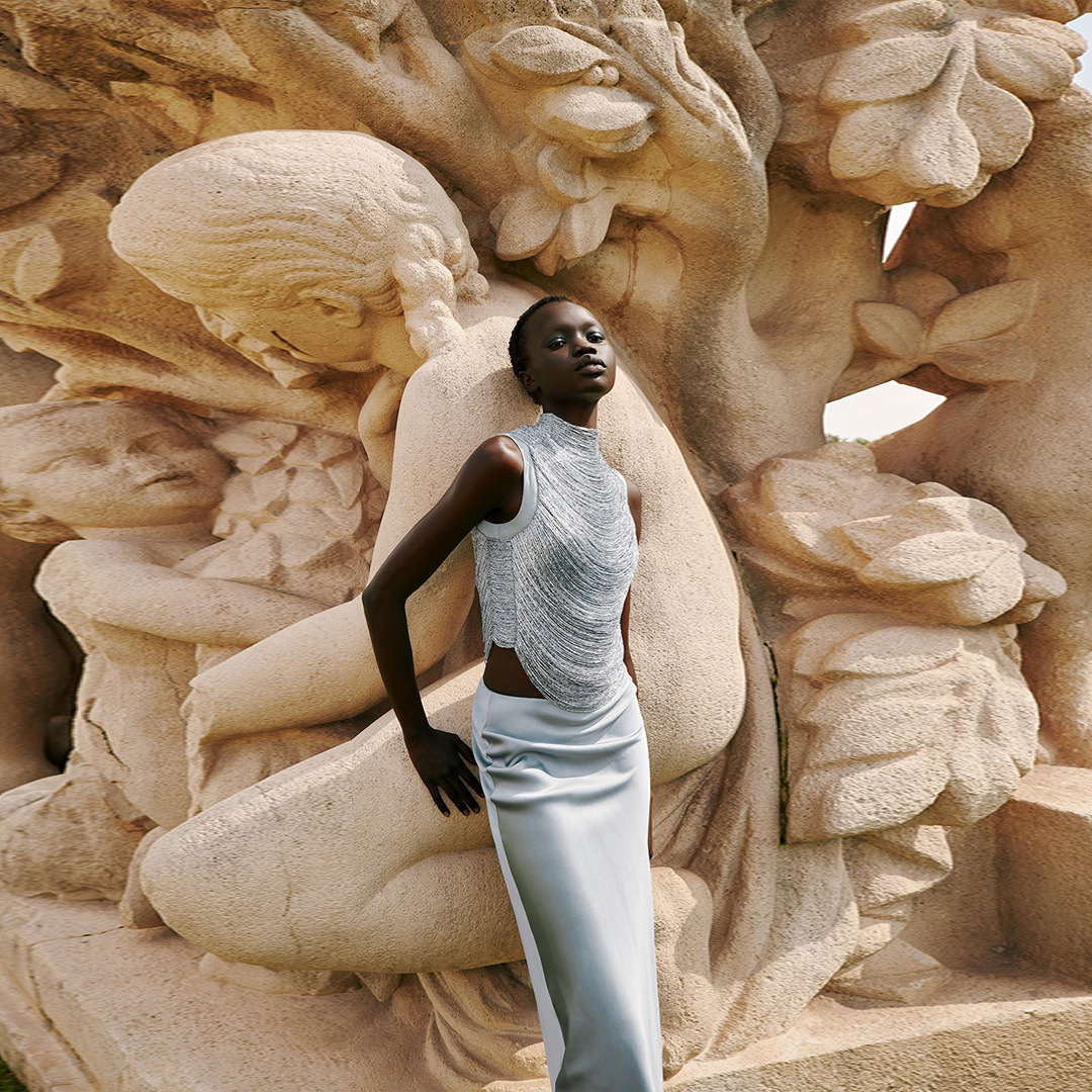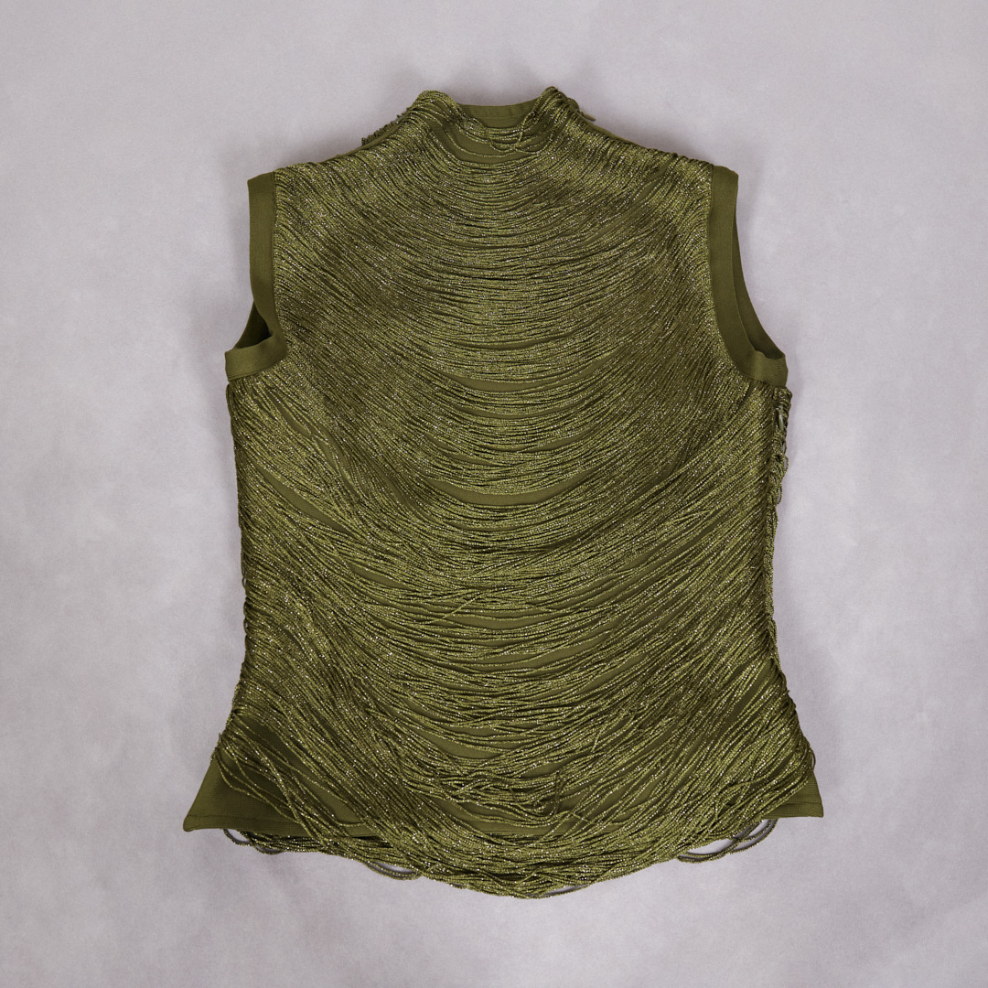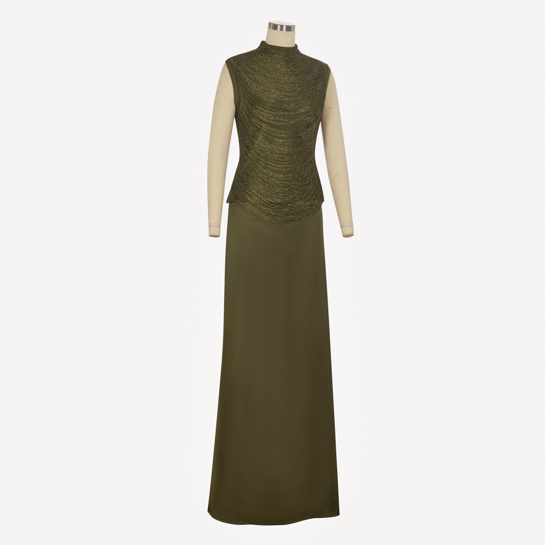 여성을위한 하이 엔드 투피스 양복 여름 새로운 민소매 하이 넥 태슬 스플 라이스 탑 새틴 스커트 슈트