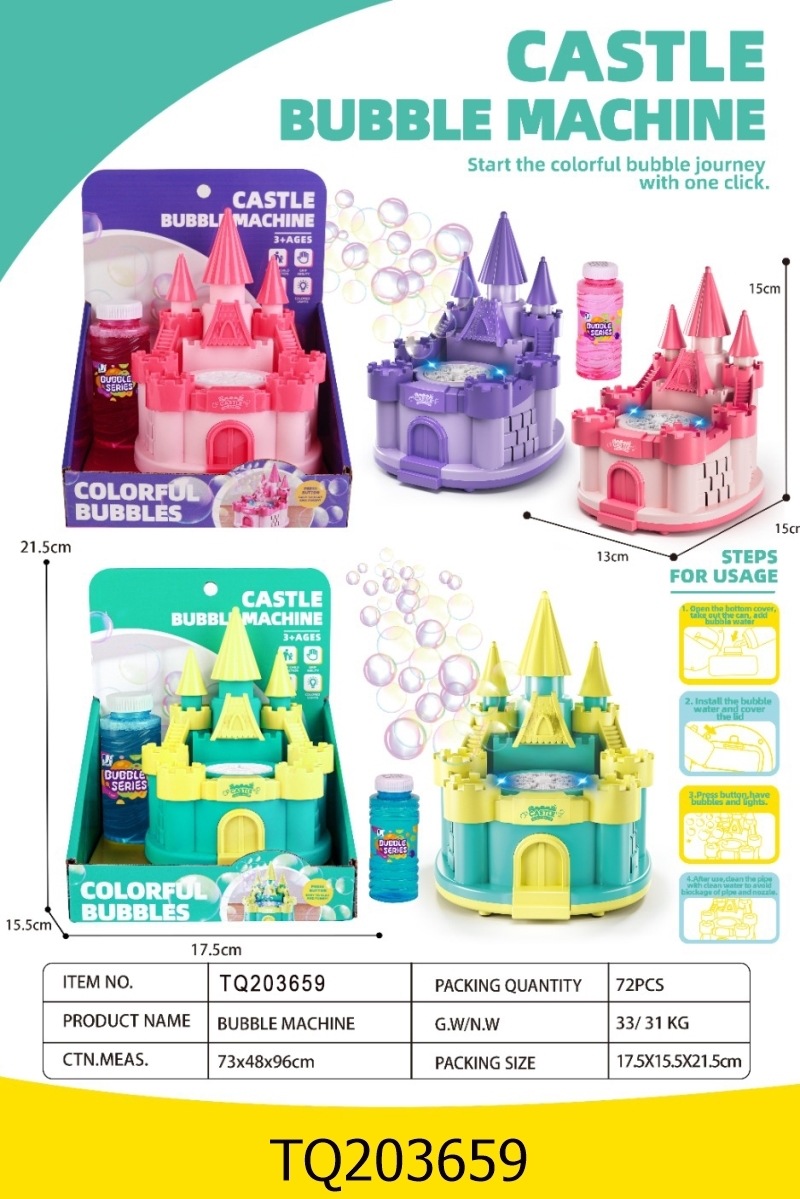 【产品名称】:电动大号灯光10孔城堡泡泡机(3色混装/展示盒)TQ203659/ 水100ML*1