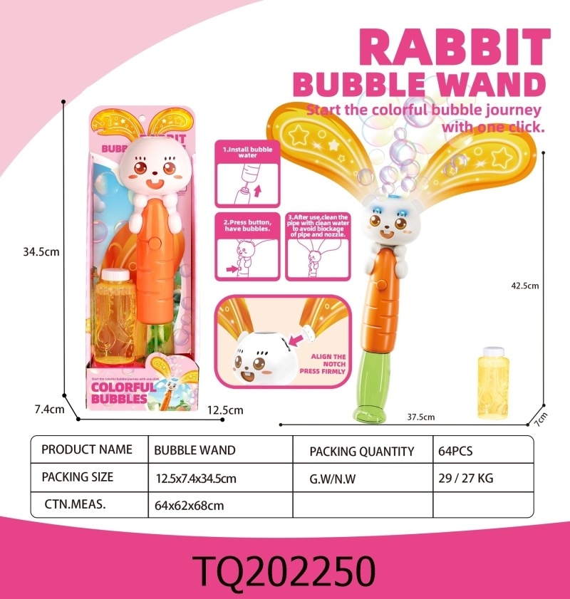 【产品名称】:电动灯光带大耳朵泡泡棒(展示盒)TQ202250/水:150ML*1