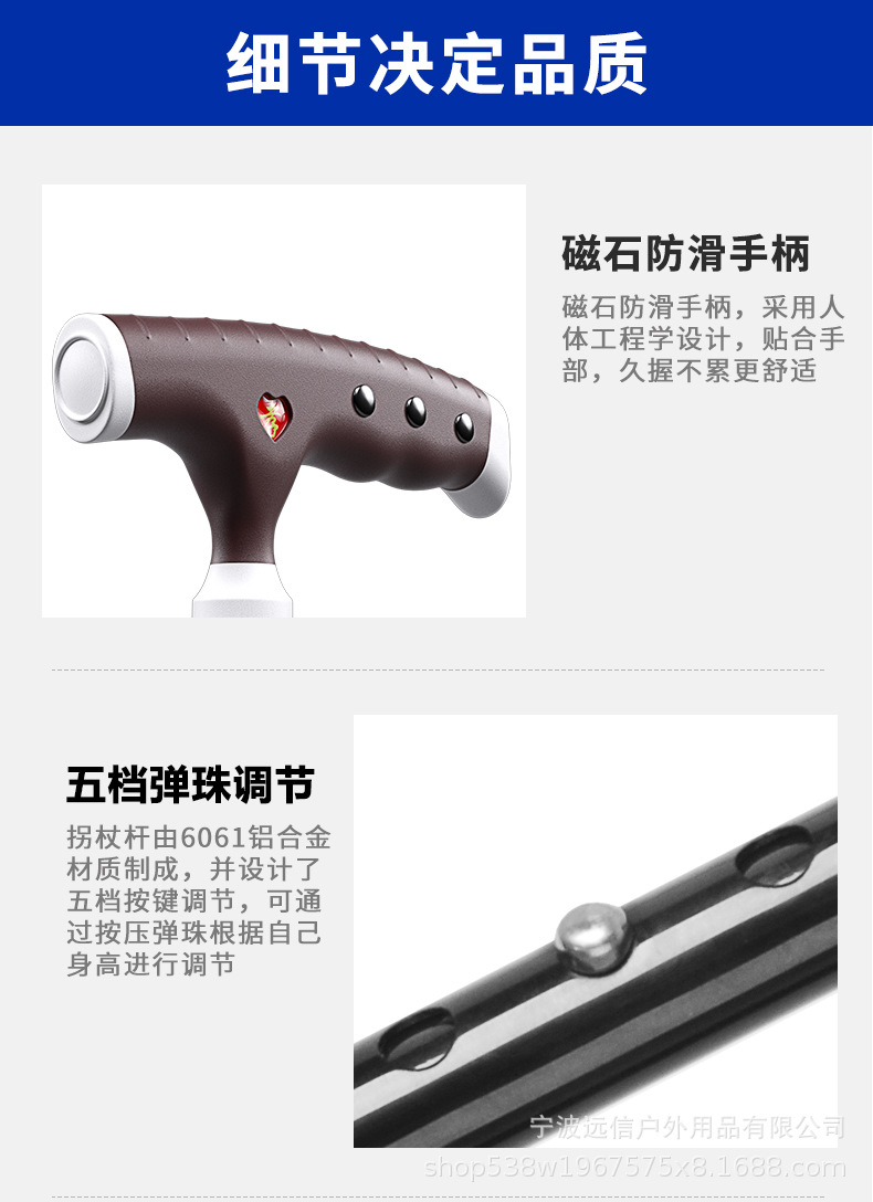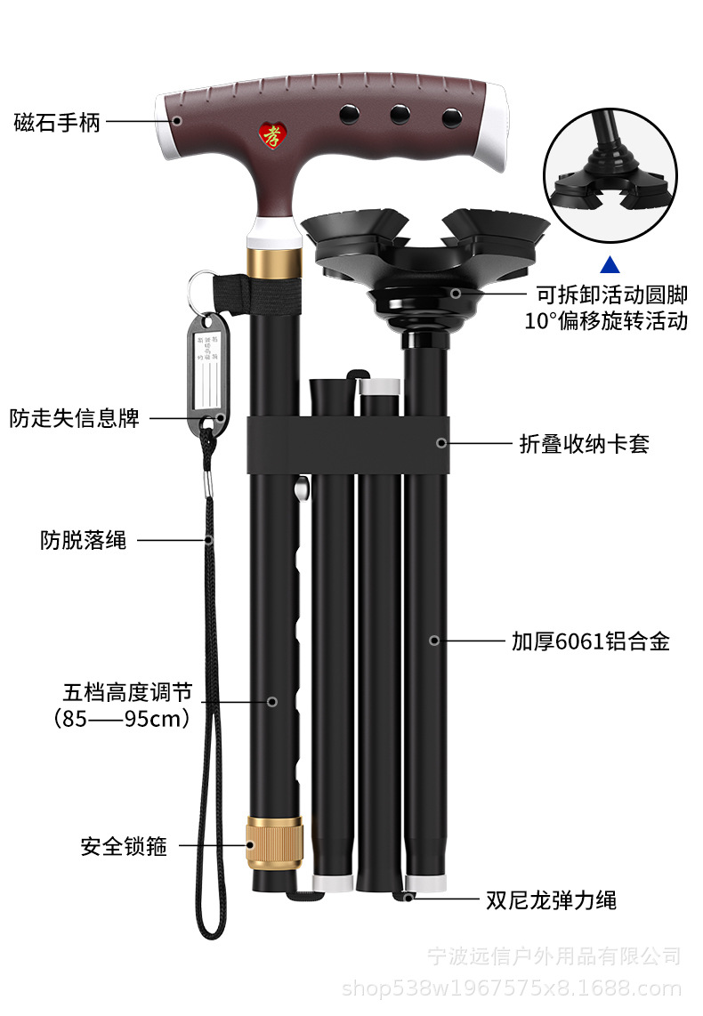 노인을 위한 알루미늄 합금 지팡이, 고무 마그넷, 한쪽 다리 활동, 4개의 다리, 이중 목적 지팡이, 접이식, 텔레스코픽 및 휴대용스토어 가기