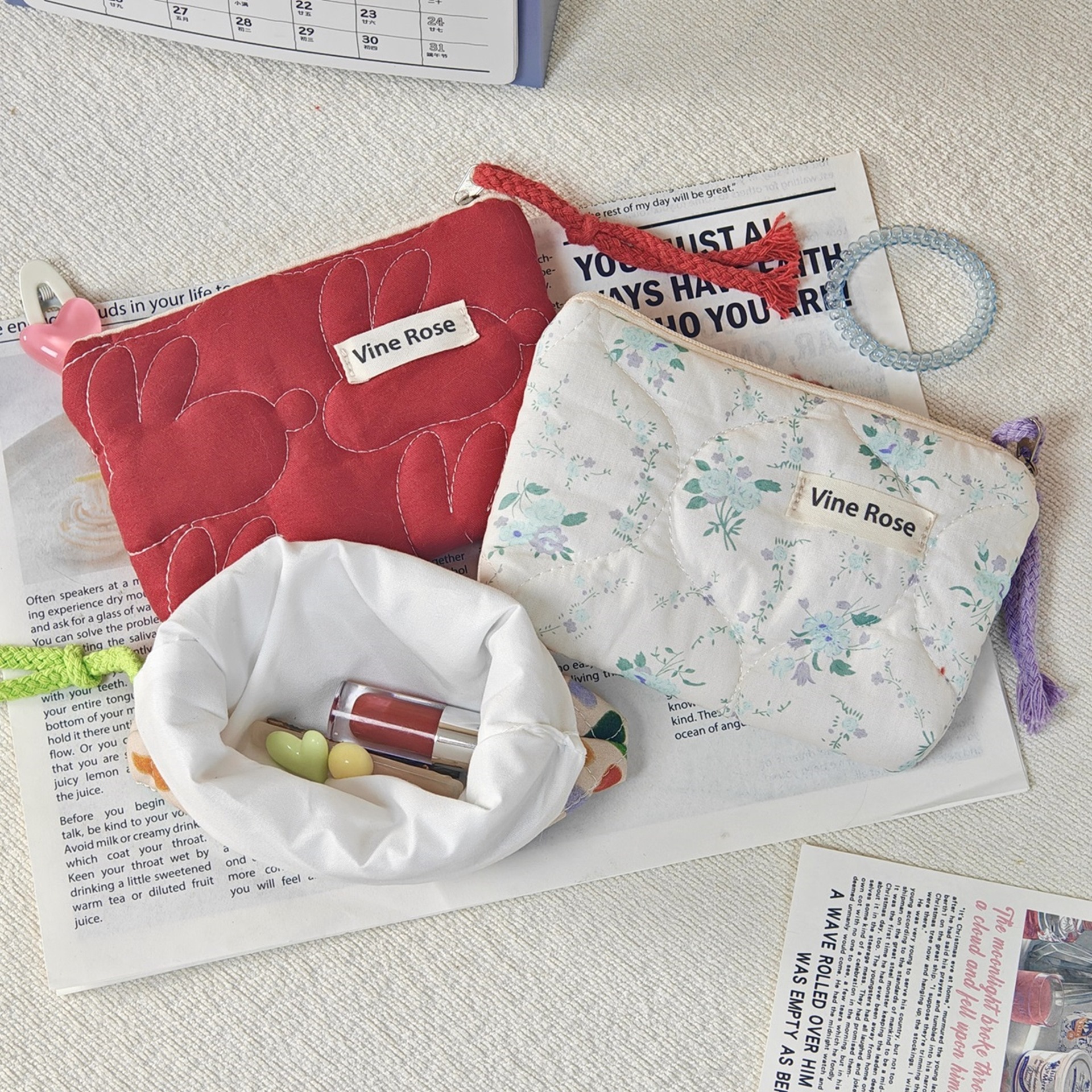 꽃무늬 동전 지갑 수납 퀼팅 퀼트 여행용 미니 카드홀더 62 립스틱백 431 휴대용 귀여운 작은 신선함