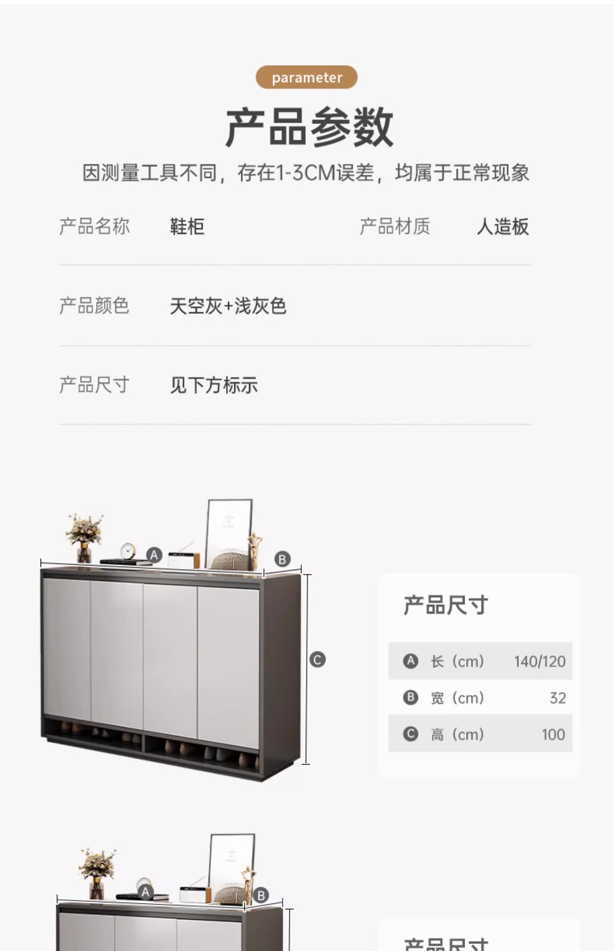• 【방습 설계 ★ 확장 가능한 신발] 120-32-100cm 모란디 그레이 + 웜 화이트;